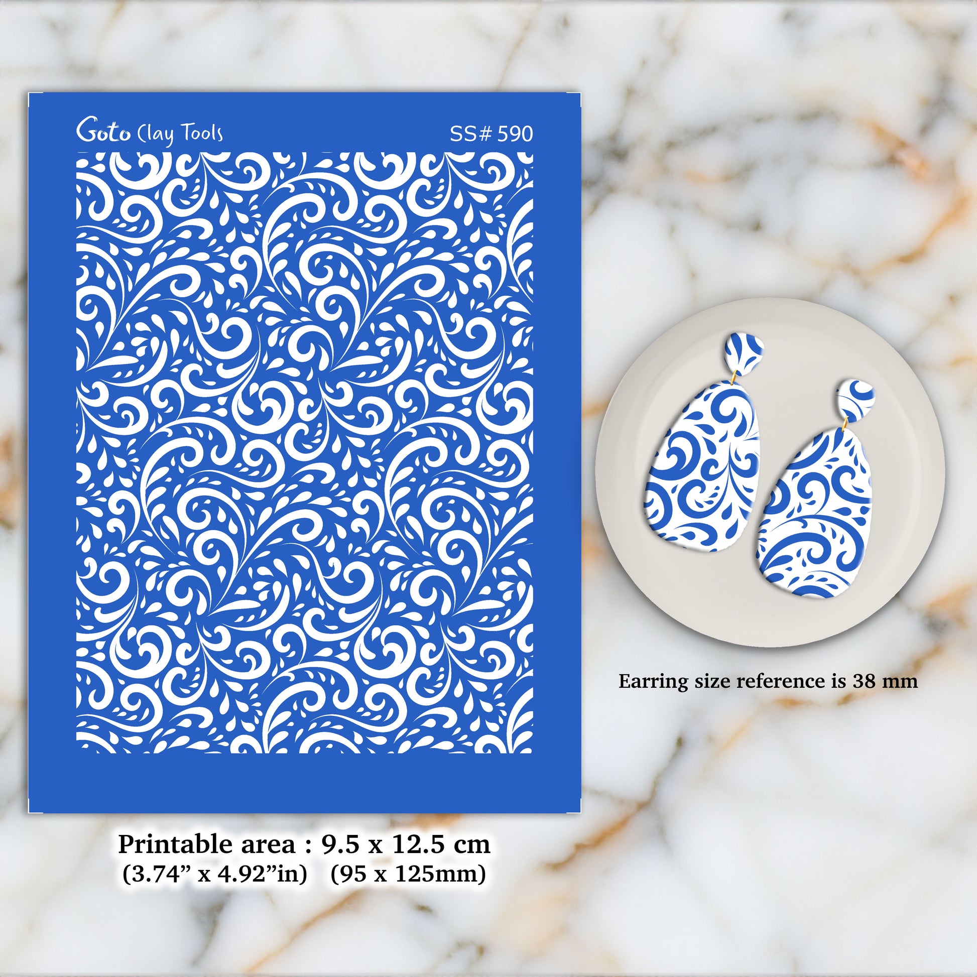 Ornamental Silkscreen for Polymer Clay Earring making, Clay Stencils, Clay Earring Silkscreen, Polymer Clay Supplies SS#590