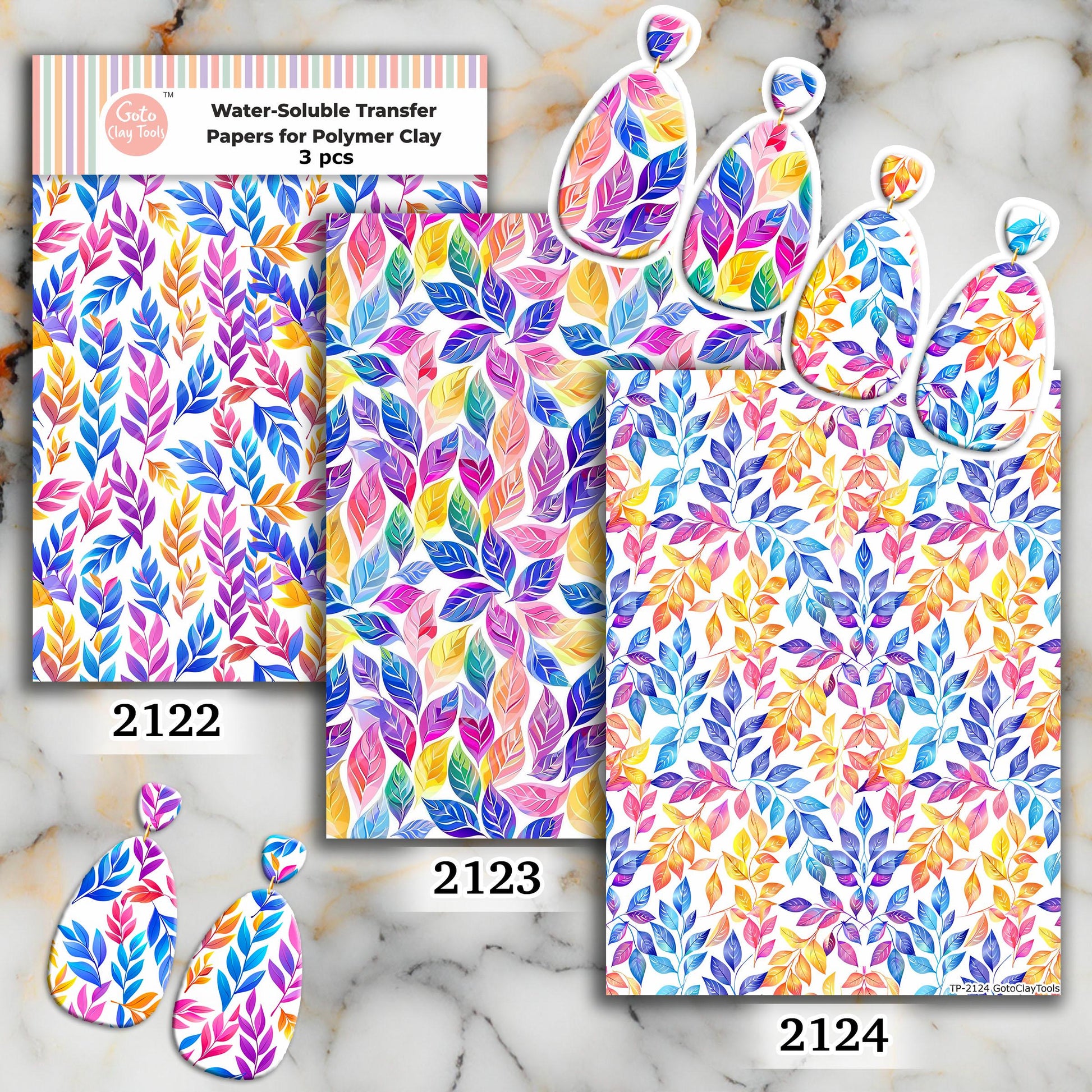 Colorful leaves pattern Transfer paper for polymer clay, water soluble transfer paper, polymer clay image transfers, magic transfer paper