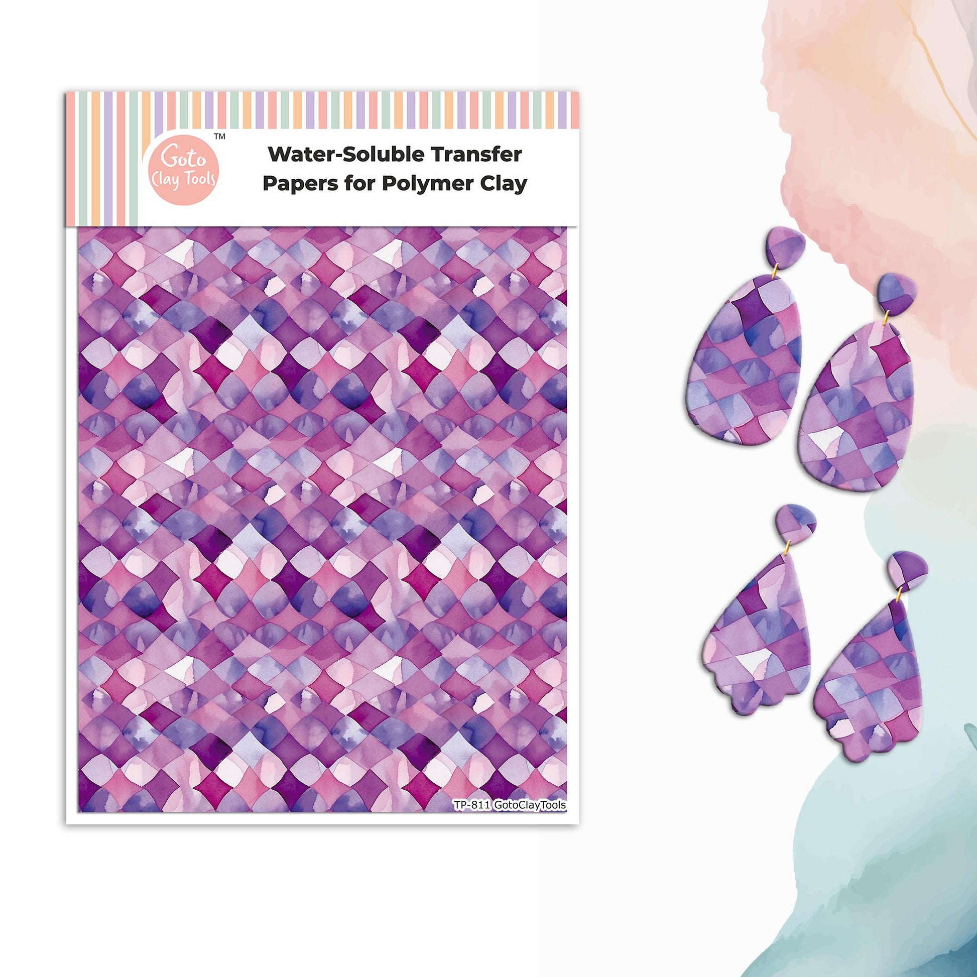 Purple diamond checks Transfer paper for polymer clay, water soluble transfer paper, polymer clay image transfers, magic transfer paper