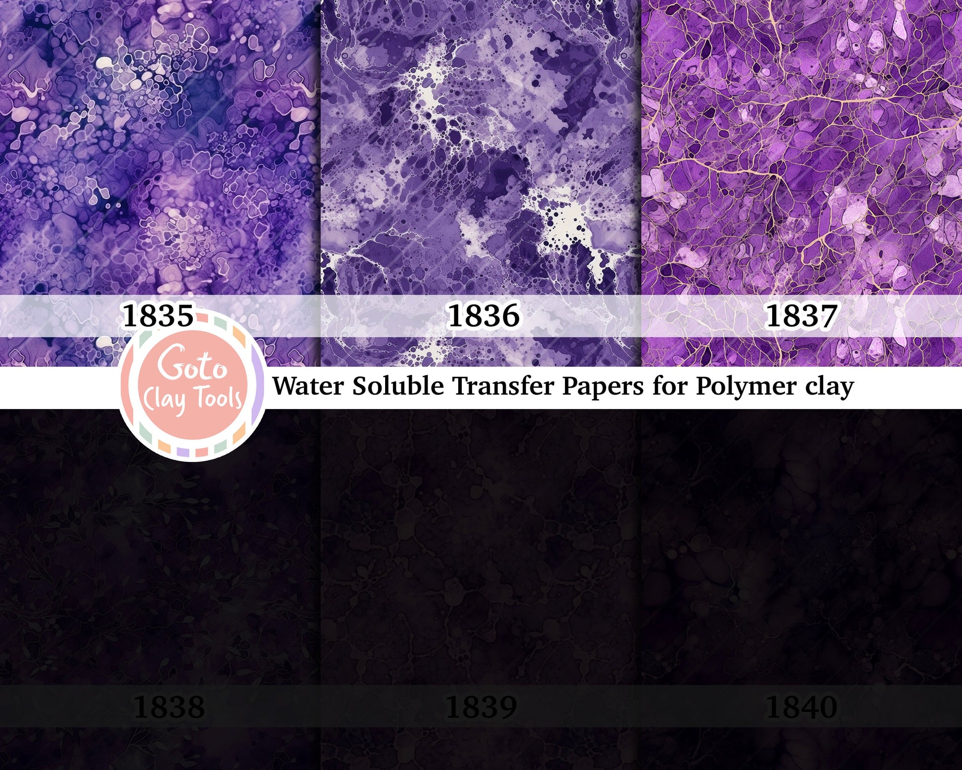 Purple marble with gold veins transfer paper for polymer clay, water soluble transfer paper, polymer clay image transfers, magic transfer paper