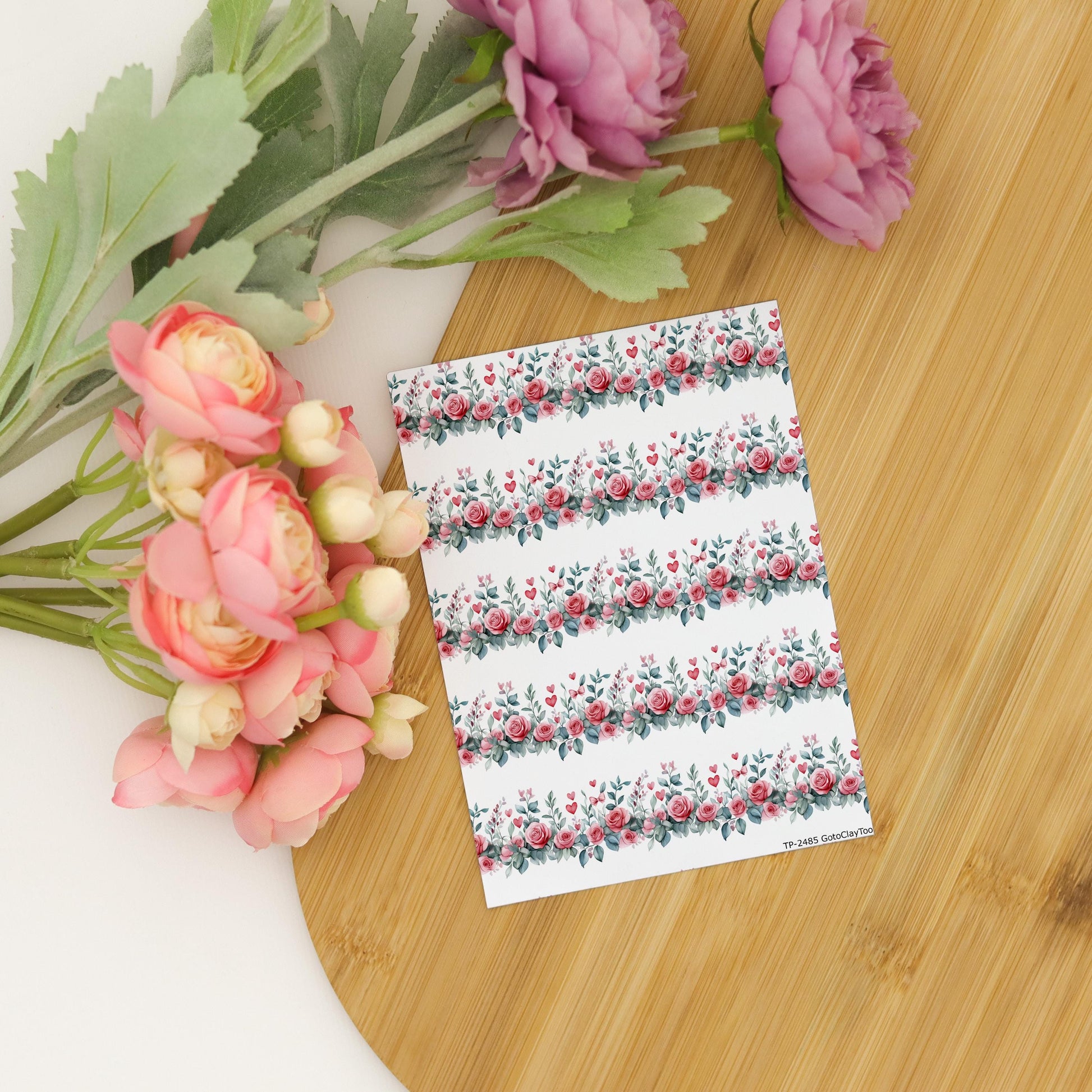 Rose Border Polymer Clay Transfer Sheet, Clay Transfer Paper, Valentine Flower transfer, polymer clay image transfers, magic transfer paper