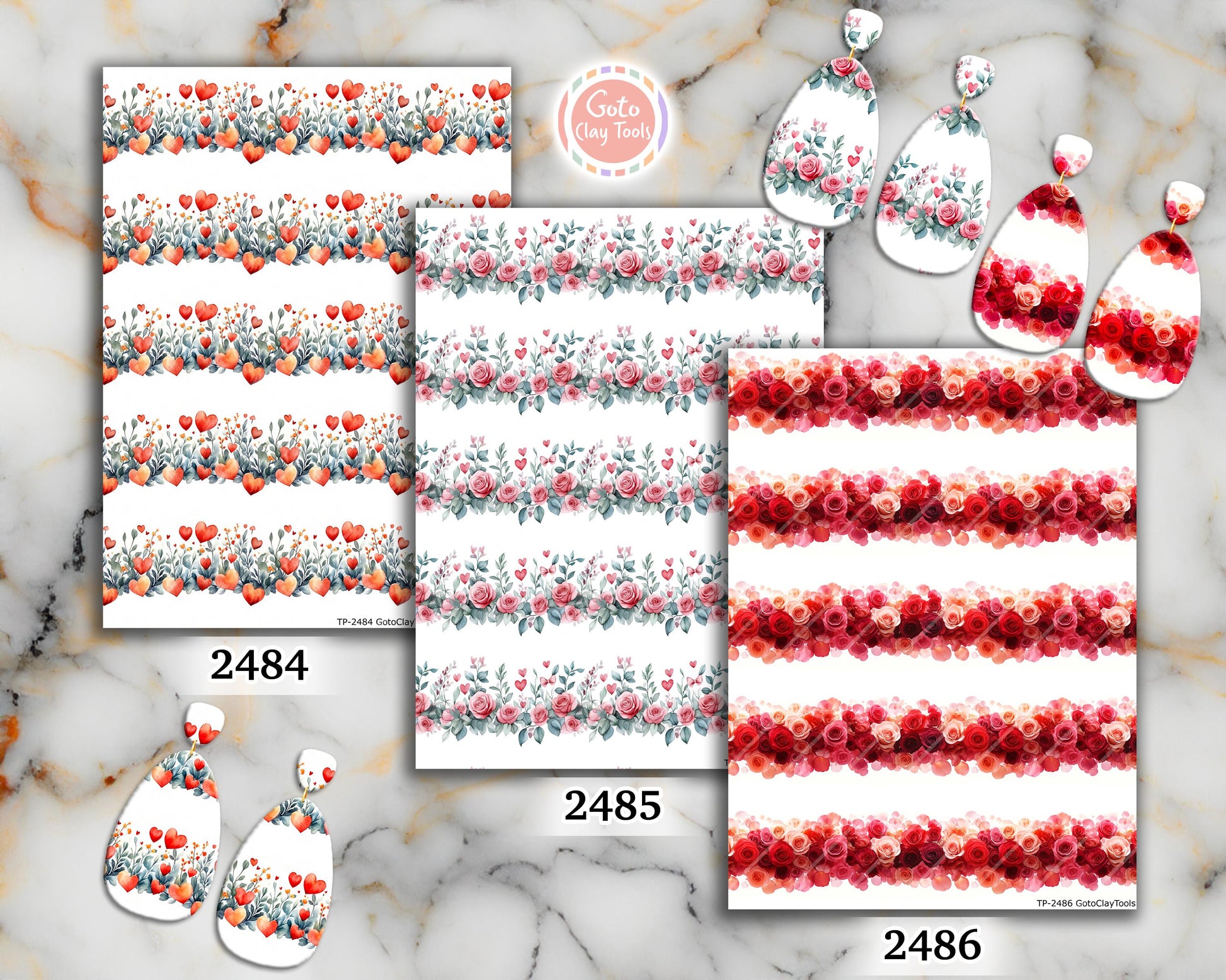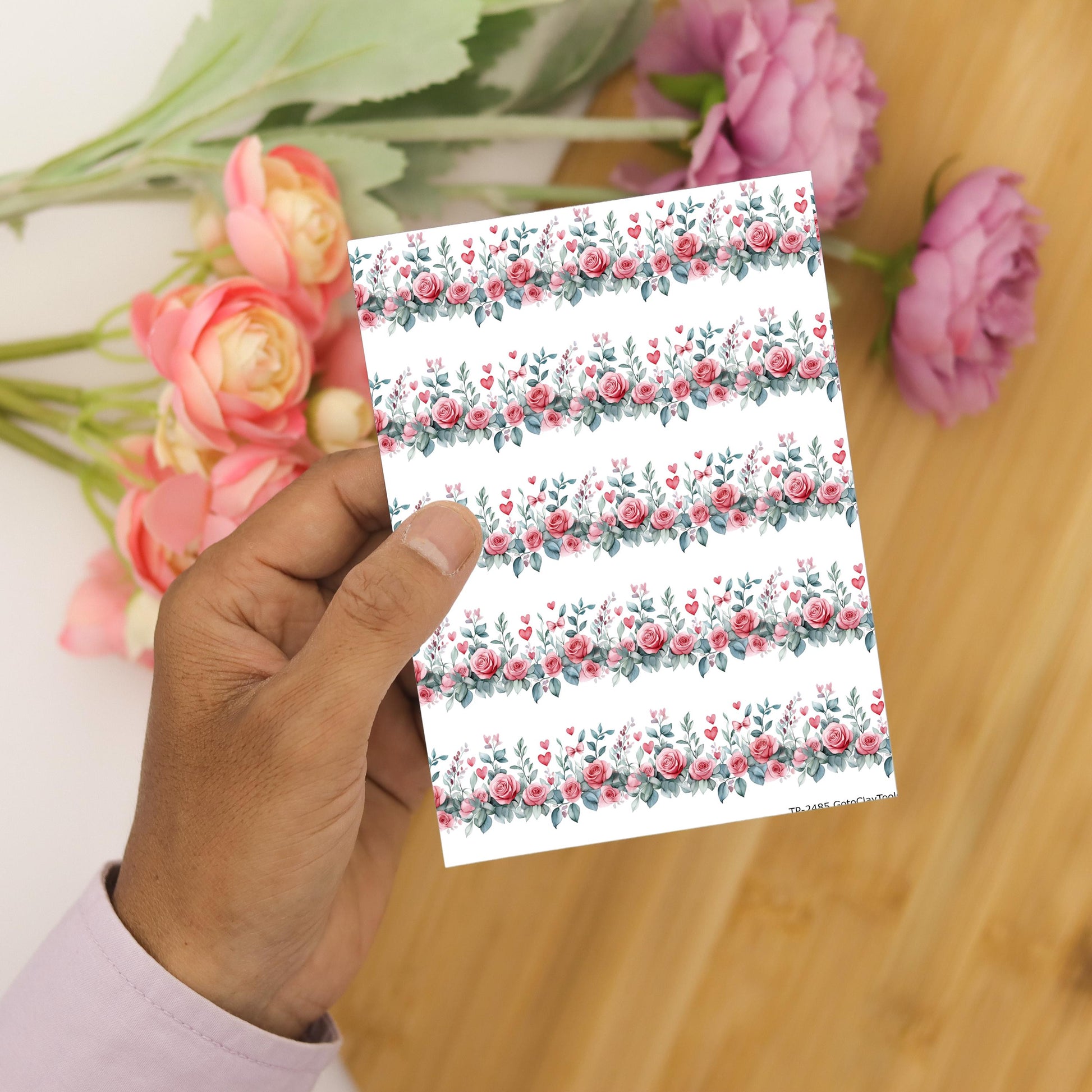 Rose Border Polymer Clay Transfer Sheet: Valentine Flower Design