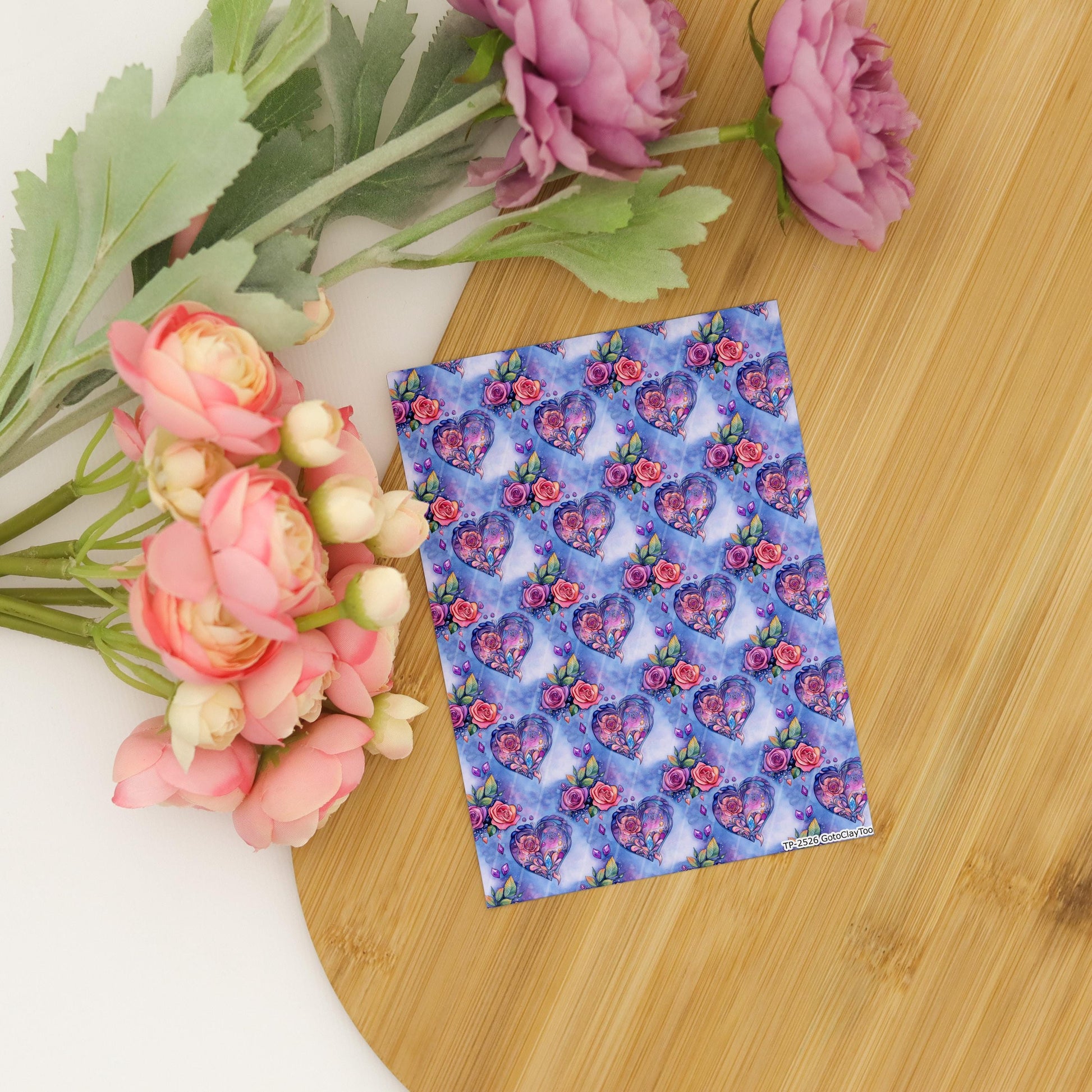 Rose Heart Polymer Clay Transfer Sheet: Valentine's Day (4x5.5 inches)