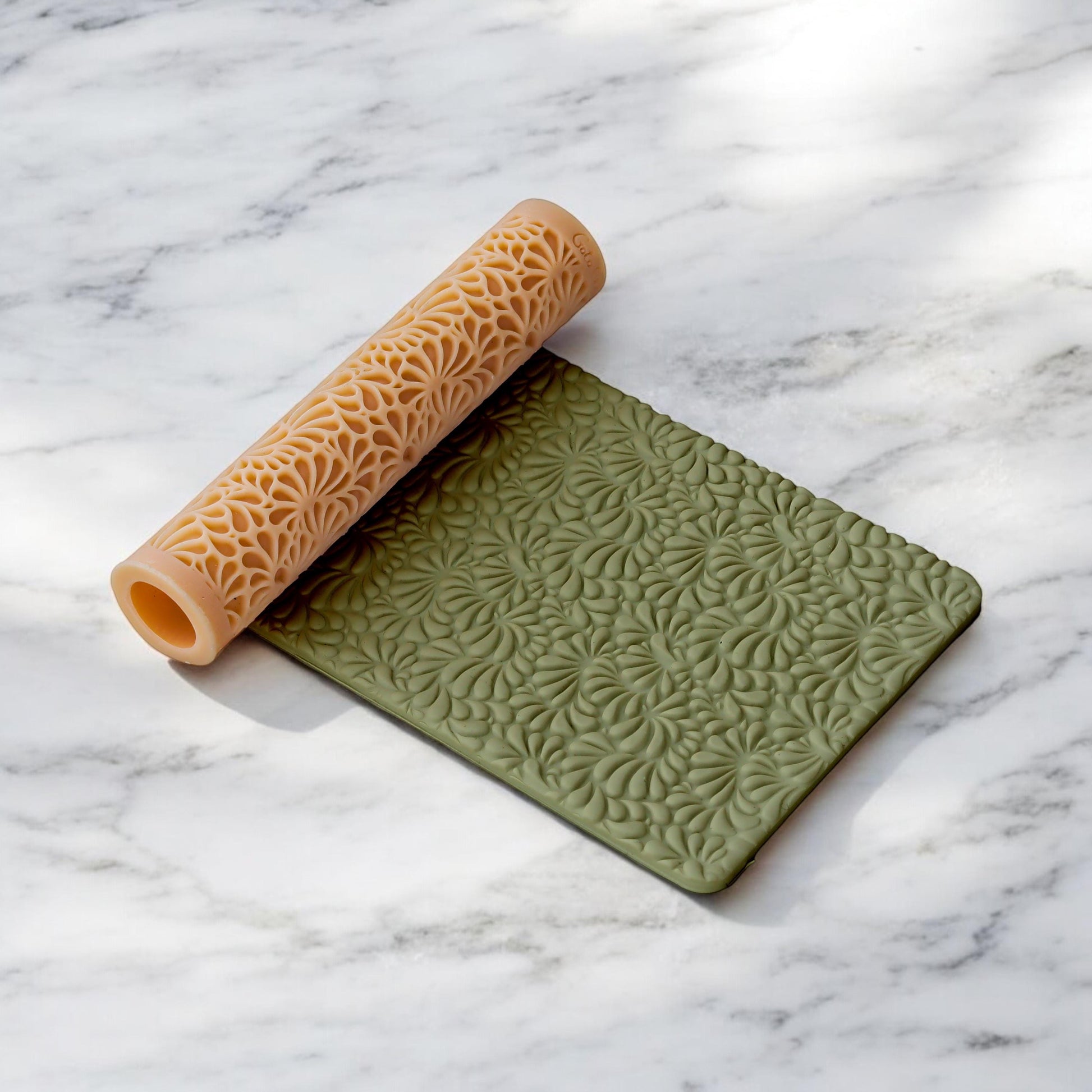 Scallop Drops Pattern Texture Roller designed to use for polymer clay for earring making.
