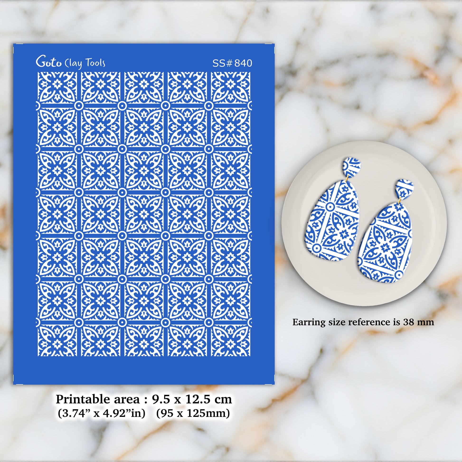 Tile Silkscreen for Polymer Clay Earring making, Clay Stencils, Clay Earring Silkscreen, Polymer Clay Supplies SS#840