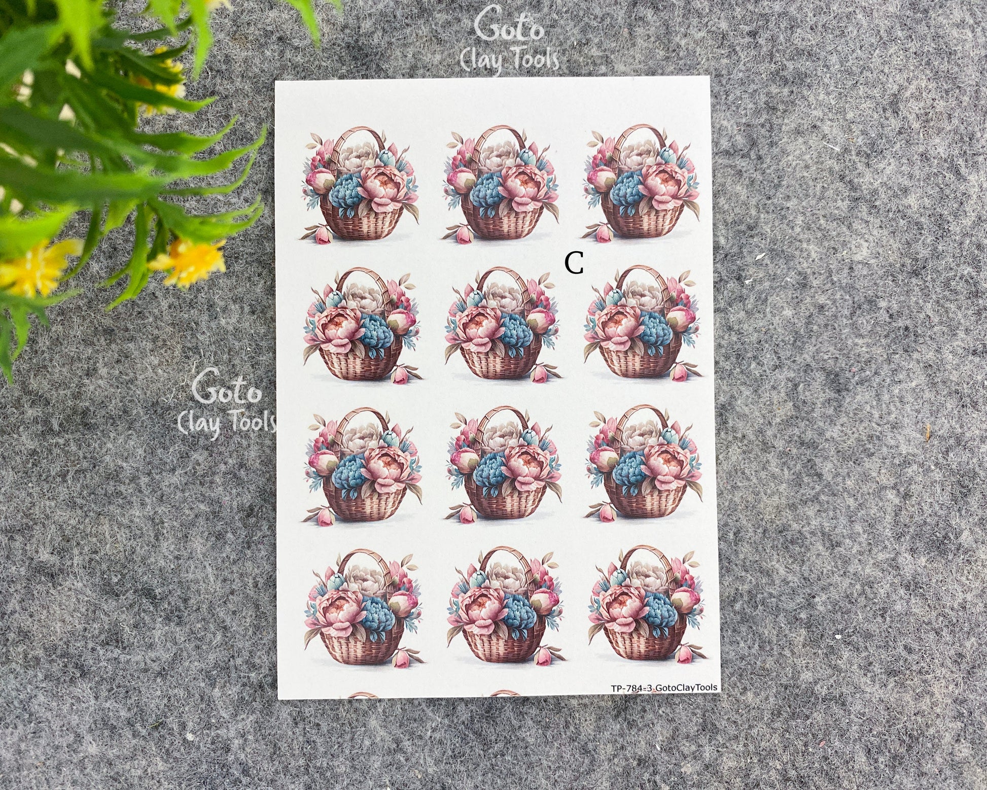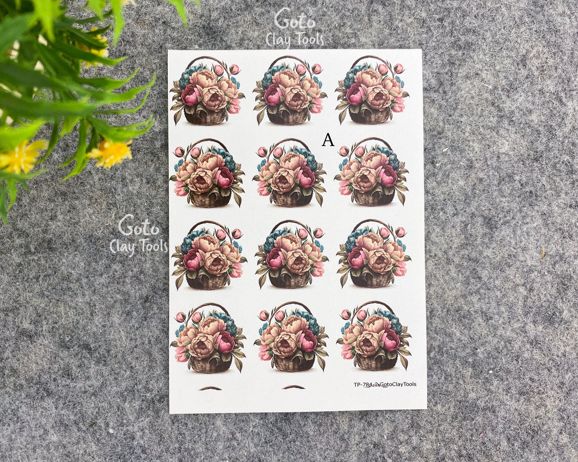 Transfer paper for polymer clay, Flower bouquets, water soluble transfer paper, polymer clay image transfers, magic transfer paper #784