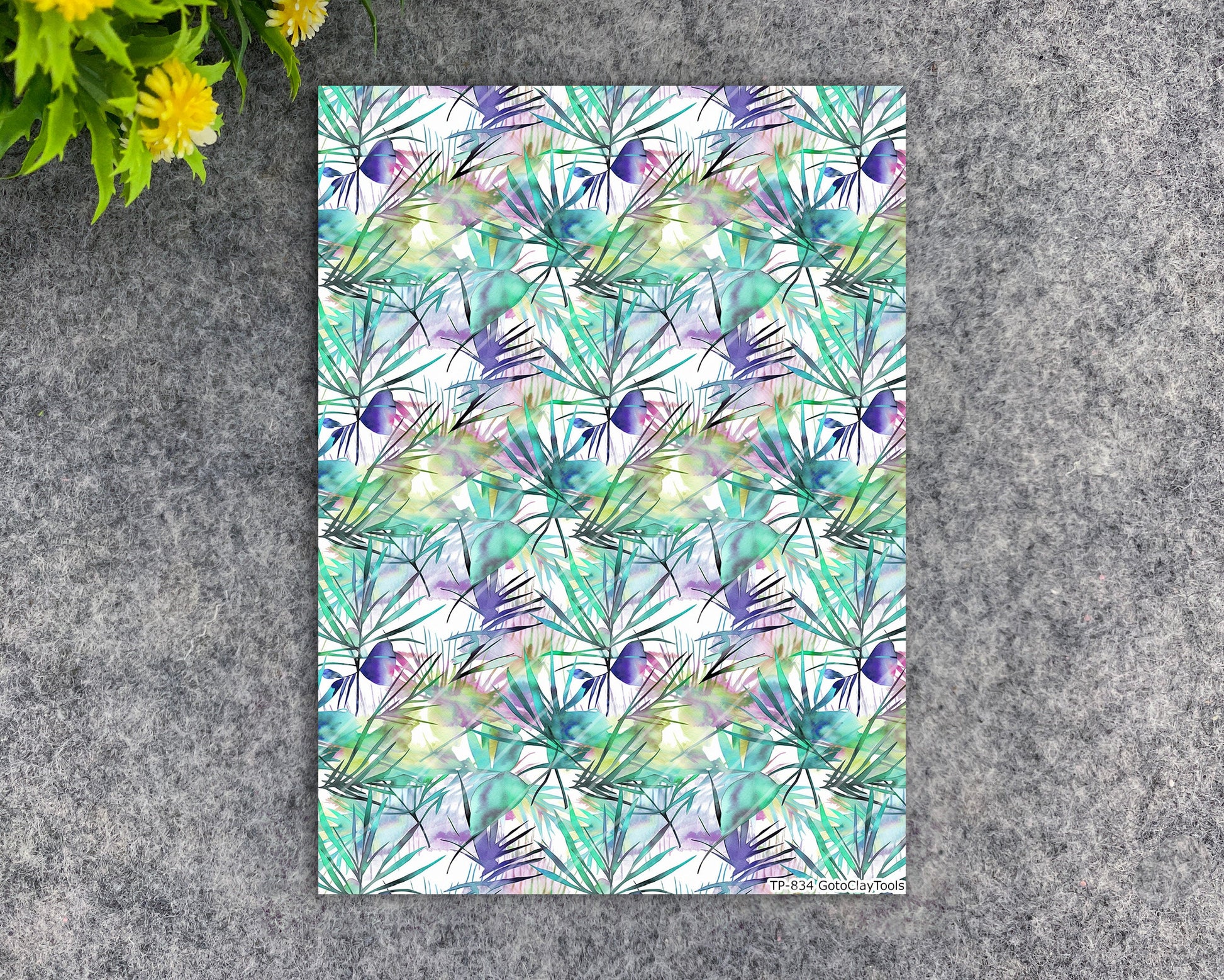 Transfer paper for polymer clay, Watercolor tropical, water soluble transfer paper, polymer clay image transfers, magic transfer paper #834