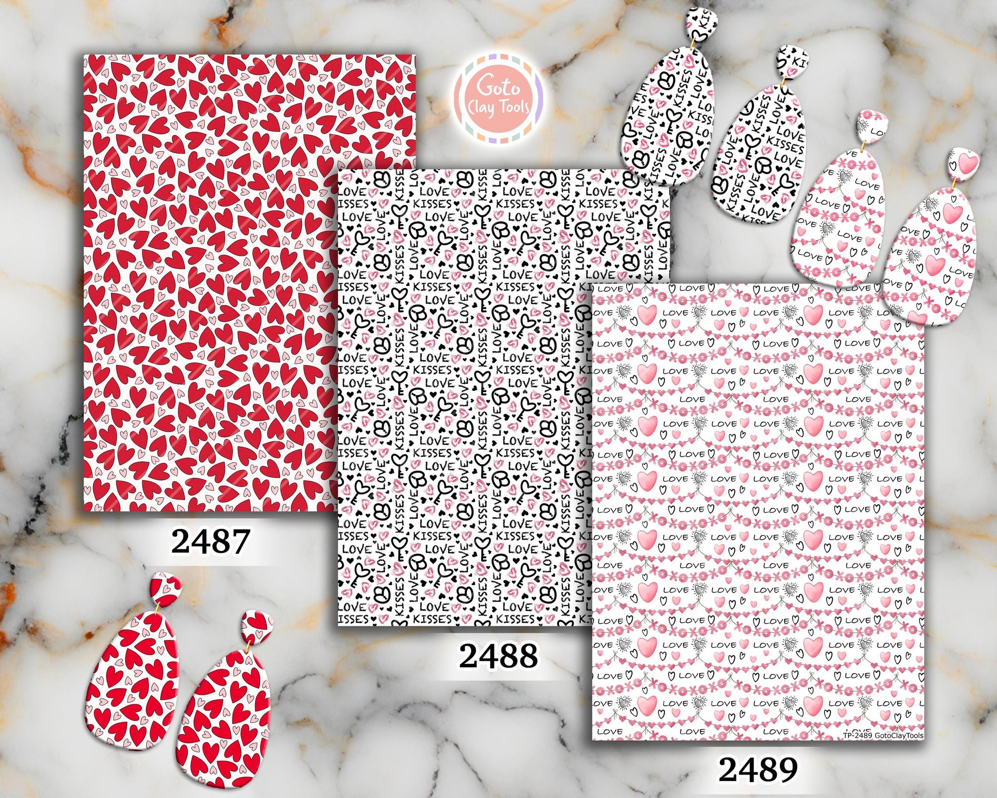 Valentine Heart Polymer Clay Transfer Sheet: Love & Kisses