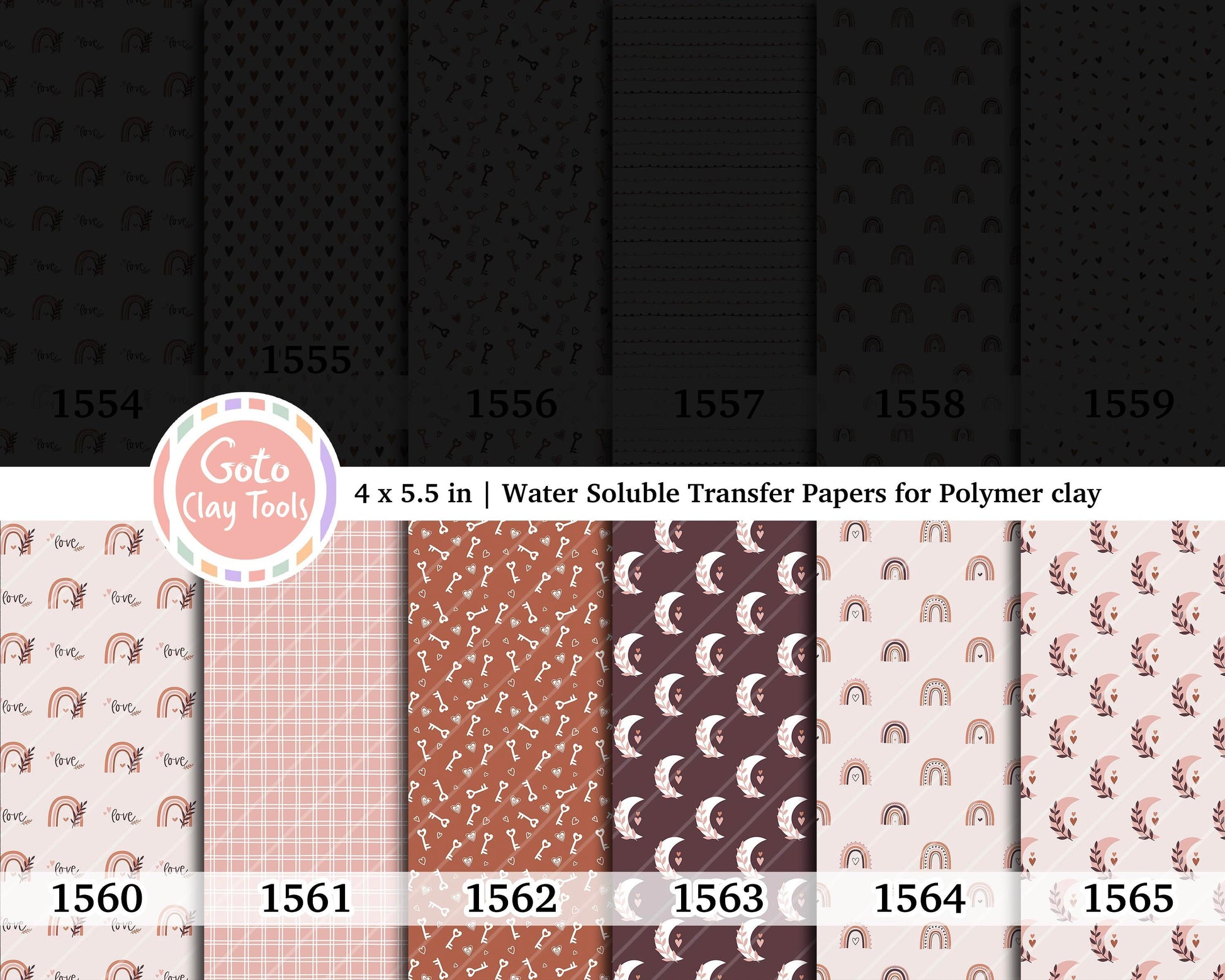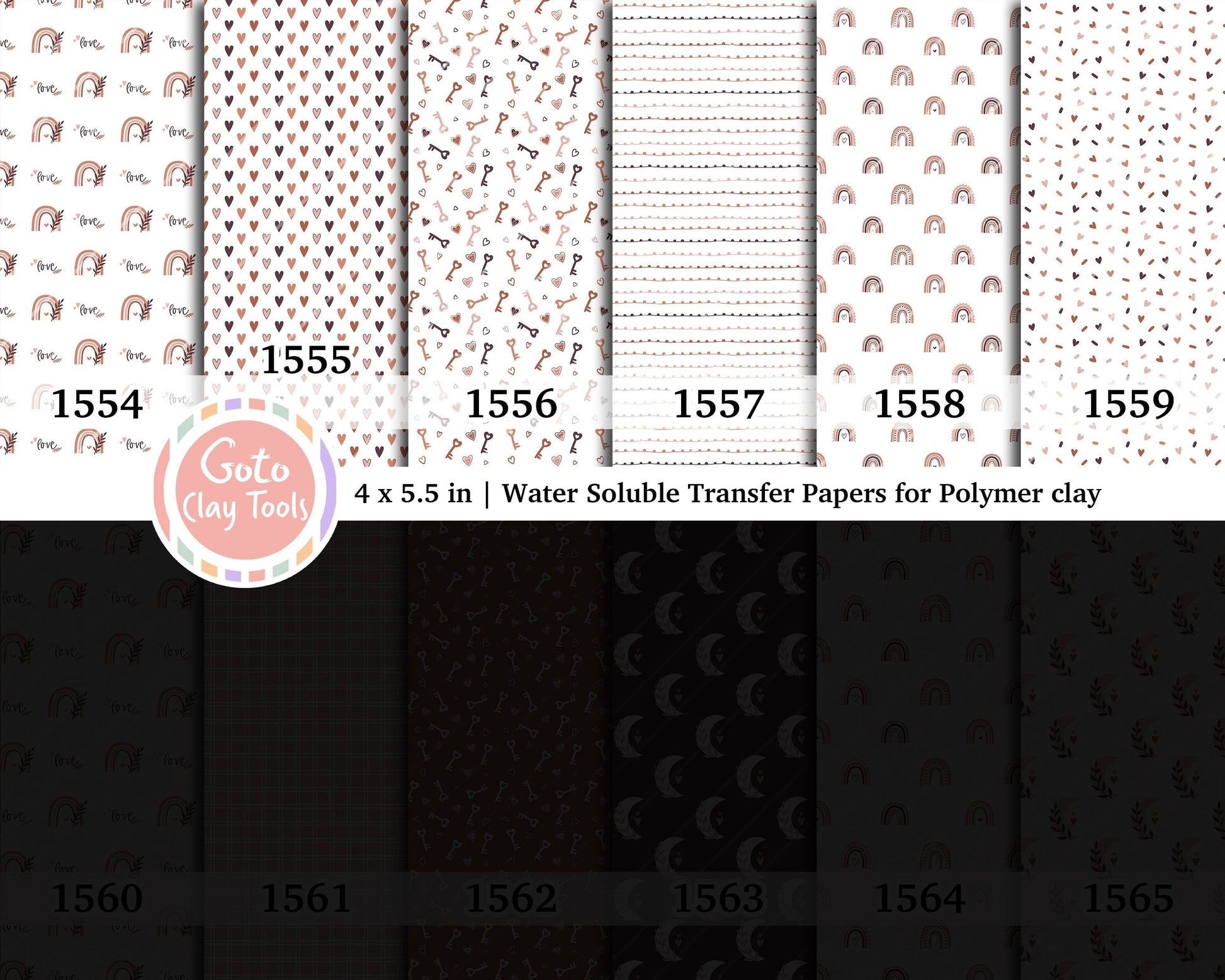 Valentine Water soluble Transfer paper for polymer clay, Bohemian love heart rainbow key, polymer clay image transfers, magic transfer paper