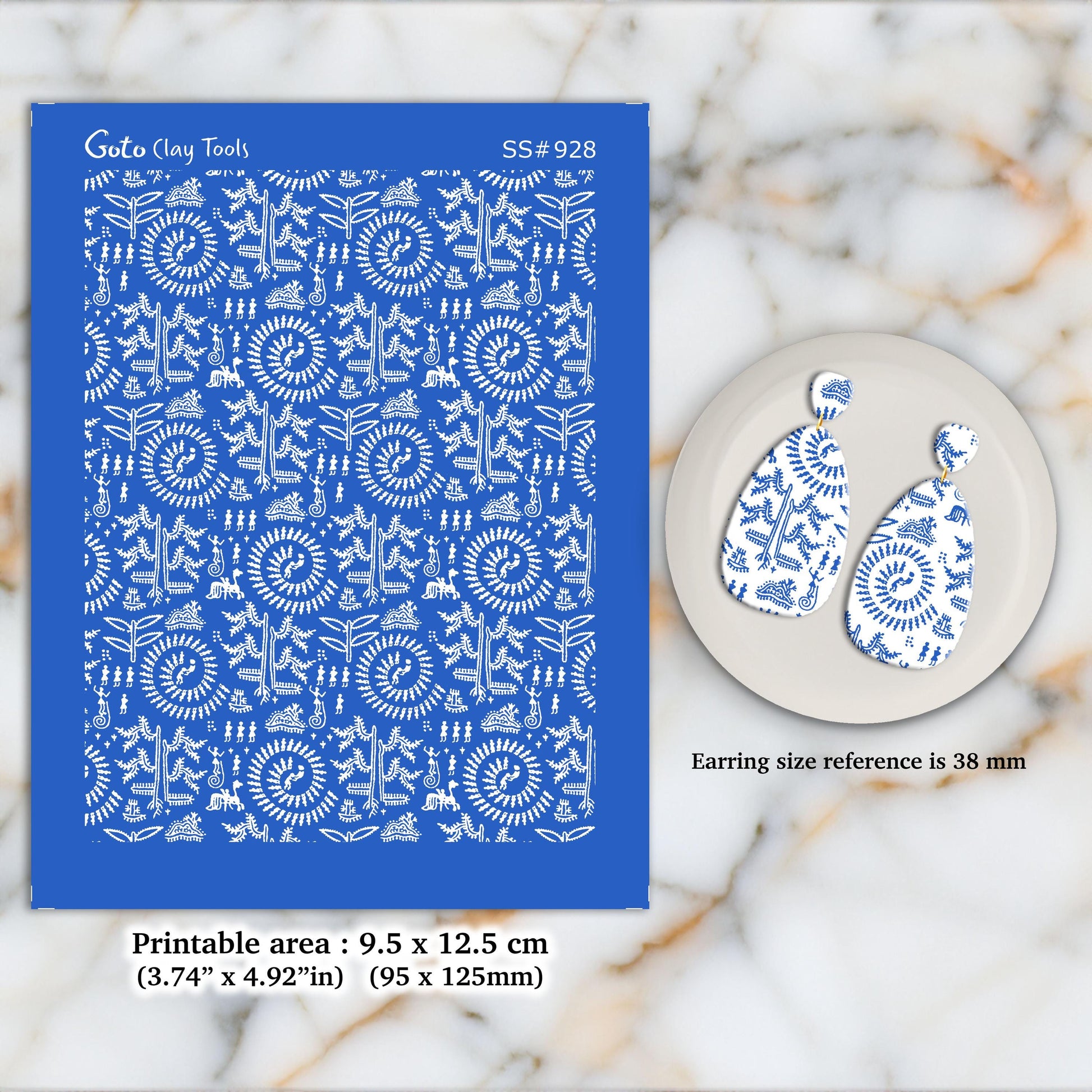 Warli Silkscreen for Polymer Clay Earrings: Indian Design Stencil SS#928