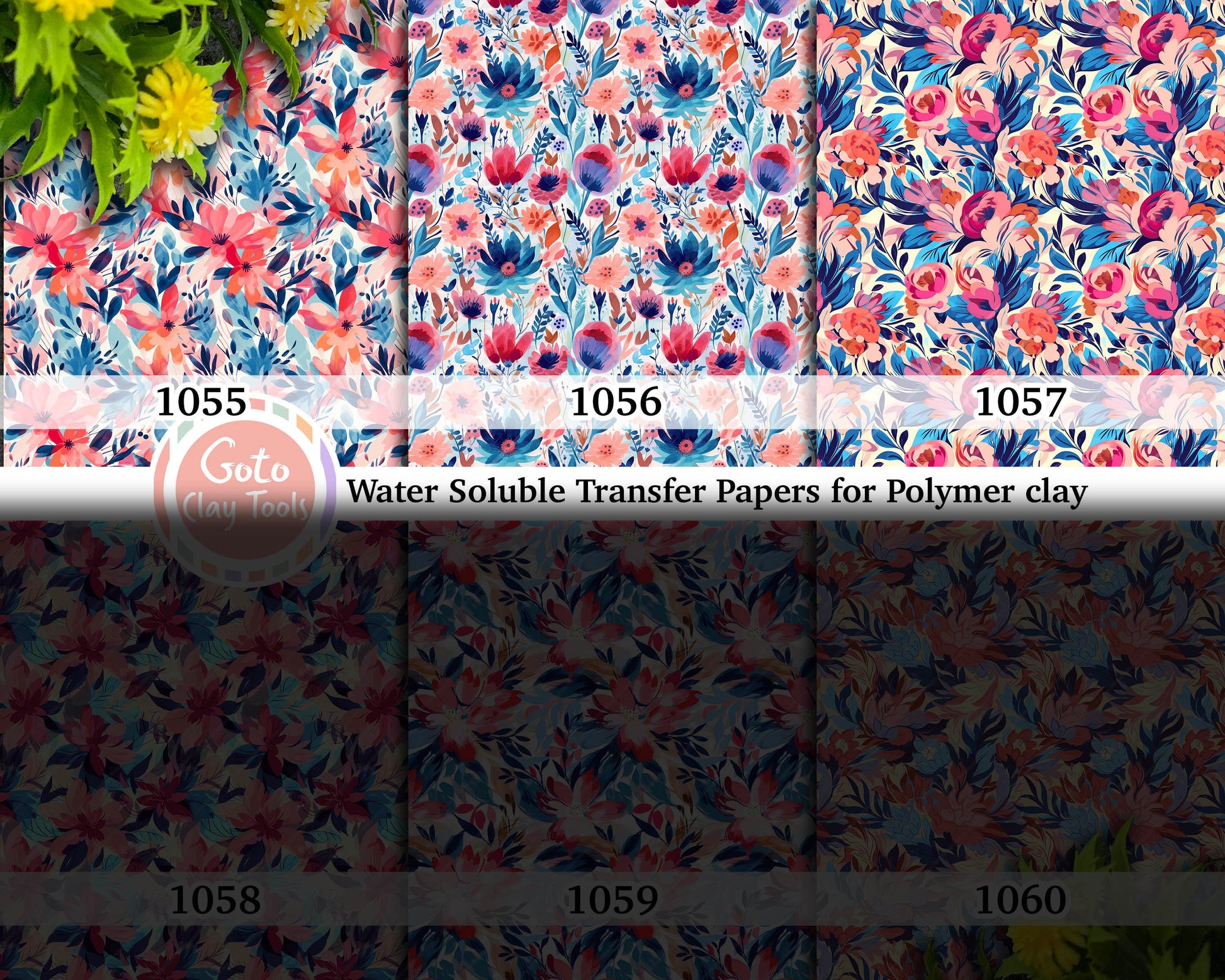 Watercolor abstract floral pattern Transfer paper for polymer clay, water soluble transfer paper, polymer clay image transfers, magic transfer paper