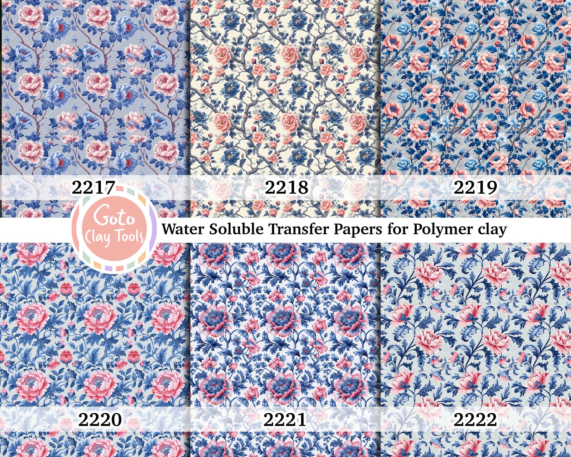 Water soluble Transfer paper for polymer clay, Blue and peach rose floral pattern, polymer clay image transfers, magic transfer paper
