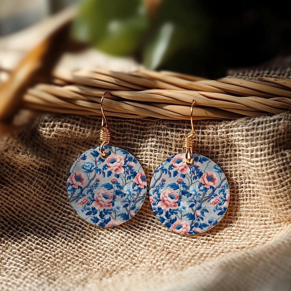 Blue and peach rose floral pattern Transfer paper for polymer clay, water soluble transfer paper, polymer clay image transfers, magic transfer paper