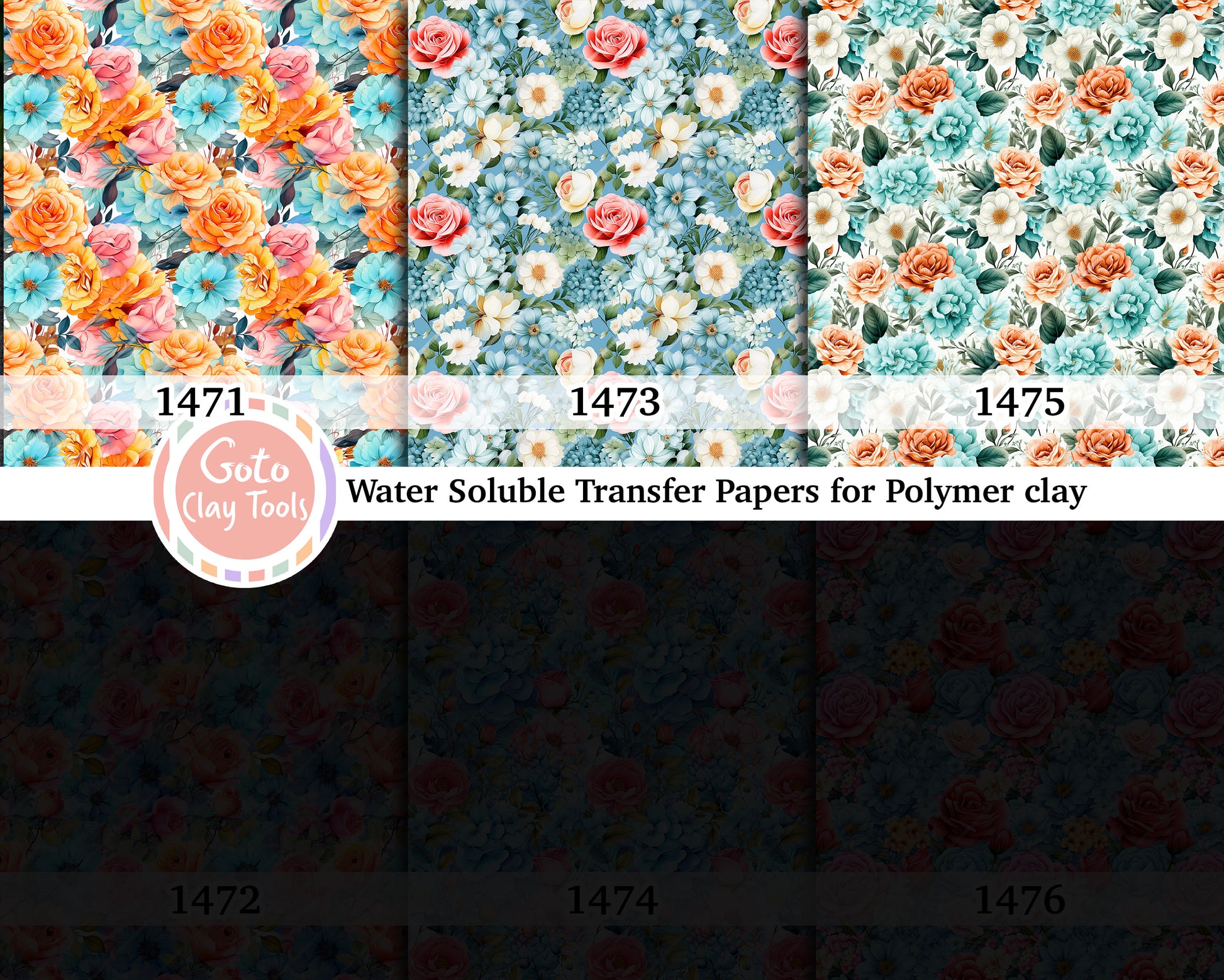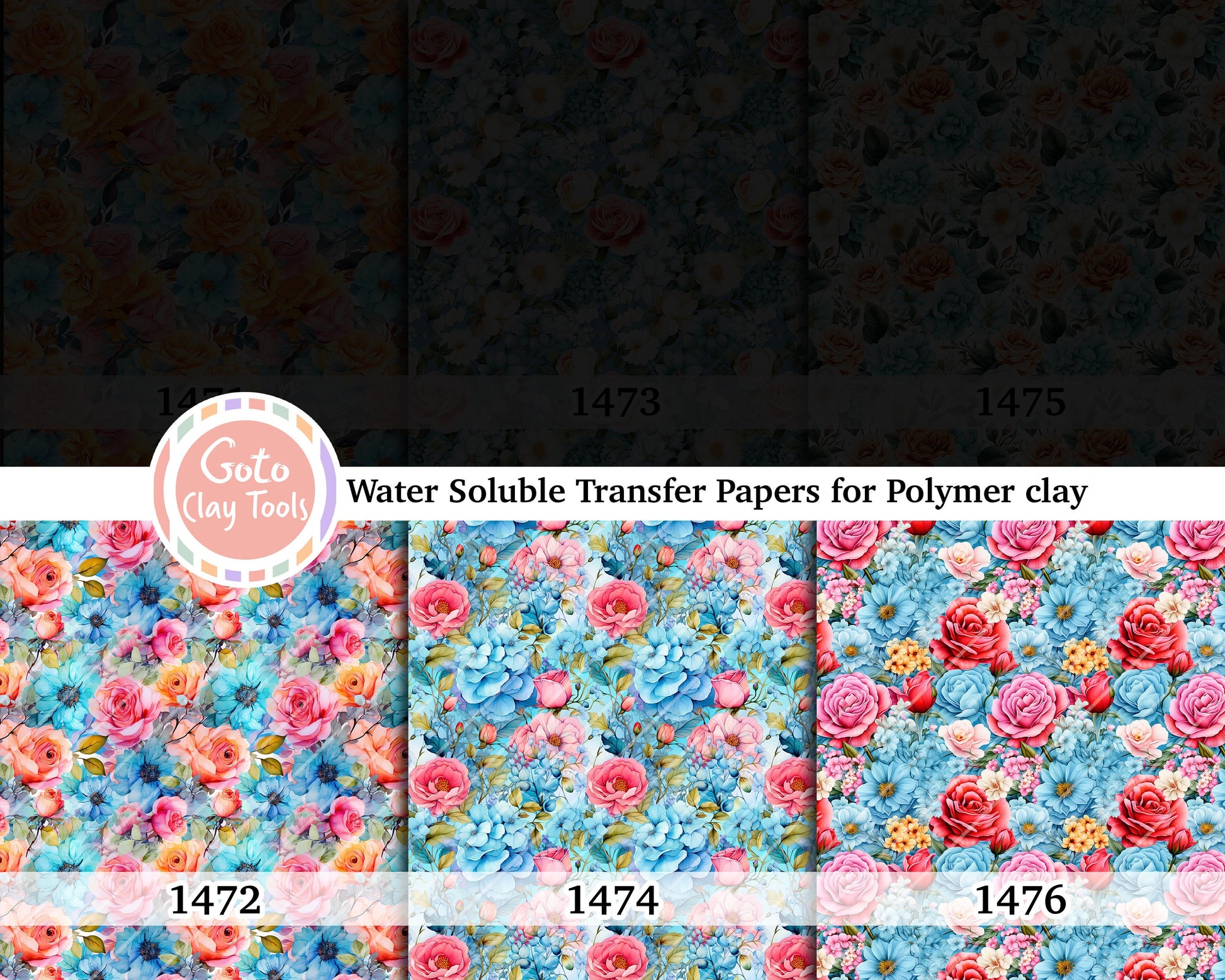 Water soluble Transfer paper for polymer clay, Blue and pink rose pattern, polymer clay image transfers, magic transfer paper