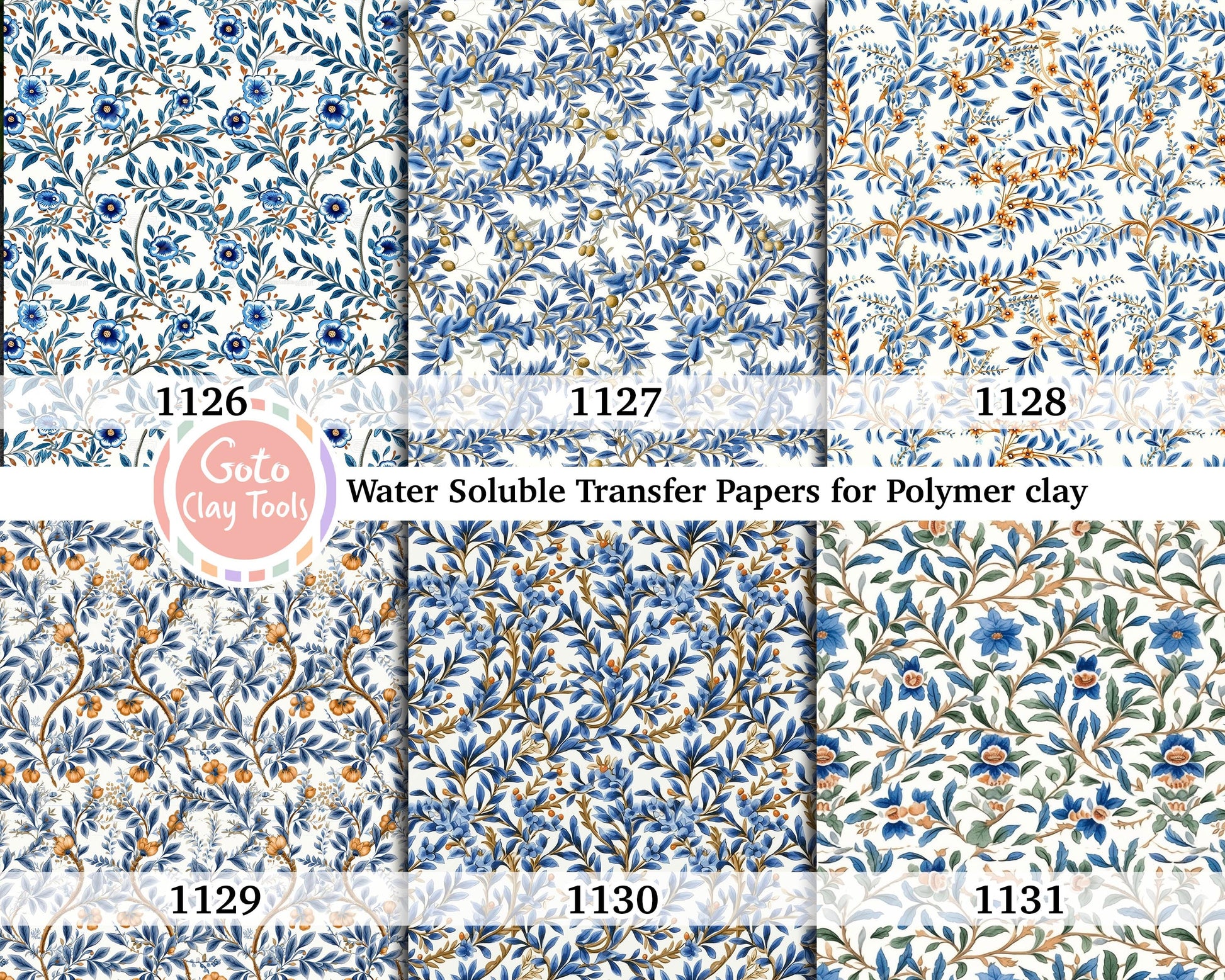 Water soluble Transfer paper for polymer clay, Blue leaves chinoisserie pattern, polymer clay image transfers, magic transfer paper