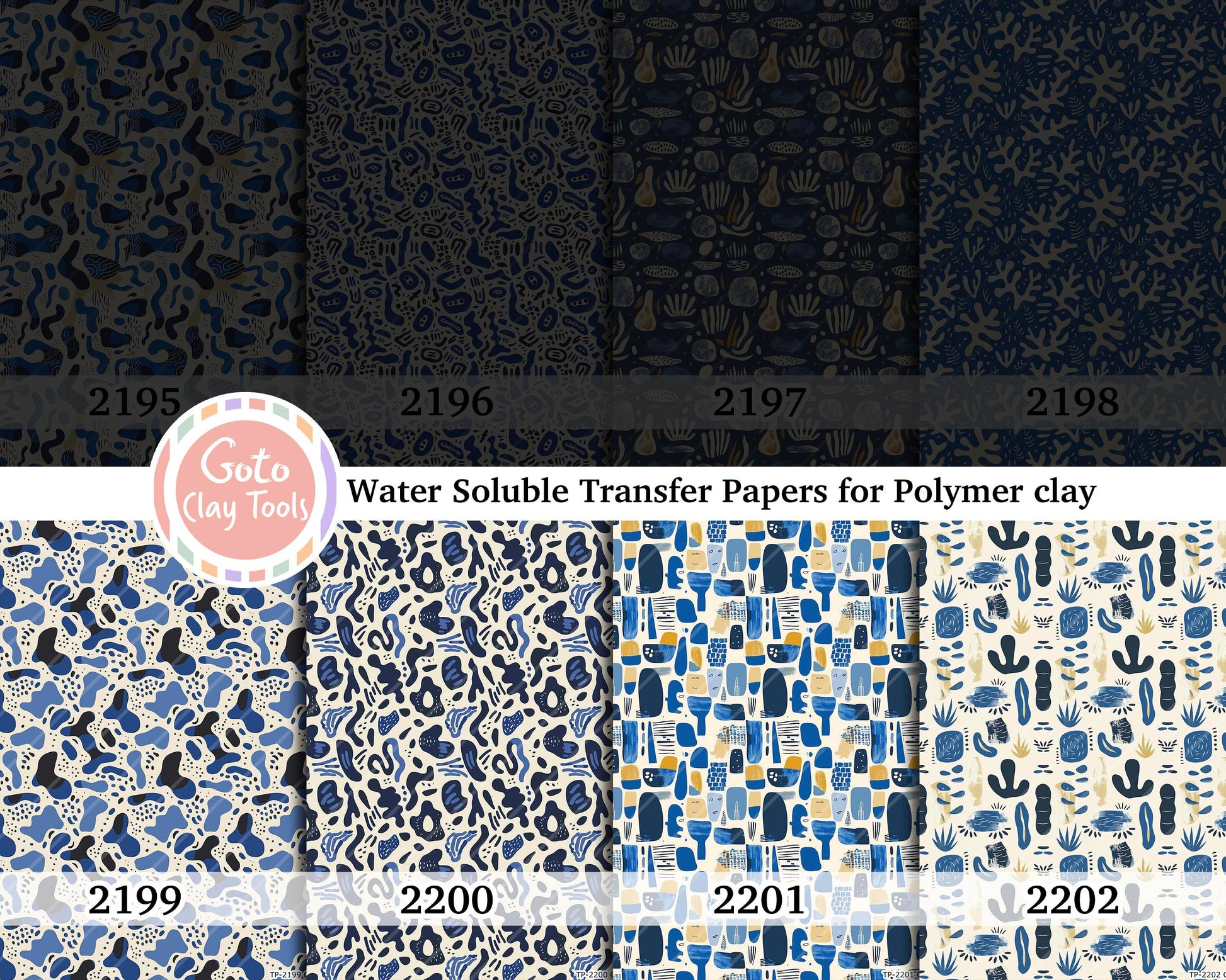 Water soluble Transfer paper for polymer clay, Blue Matisse pattern, polymer clay image transfers, magic transfer paper