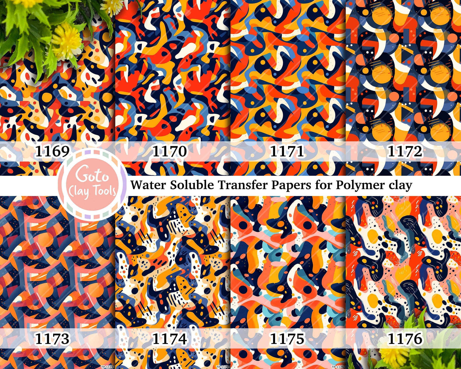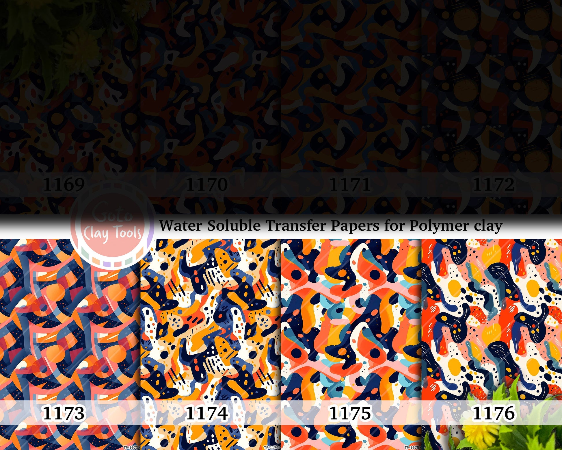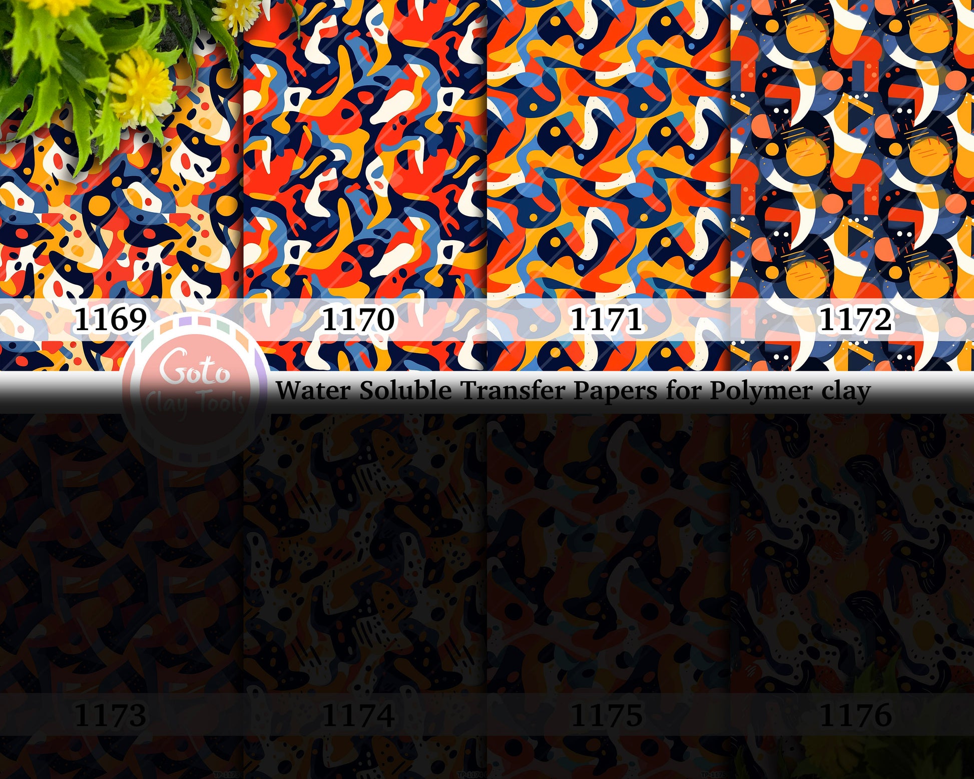 Water soluble Transfer paper for polymer clay, Colorful abstract patterns, polymer clay image transfers, magic transfer paper