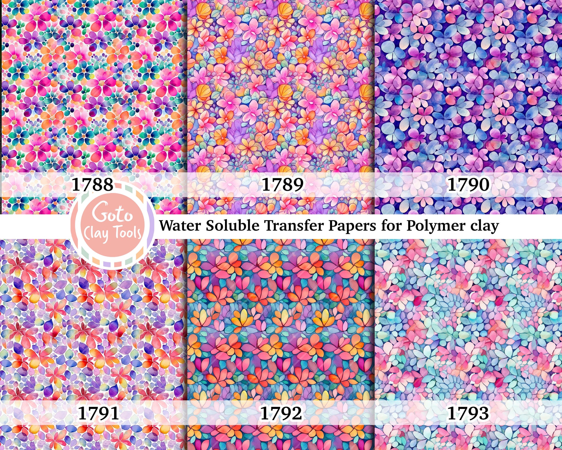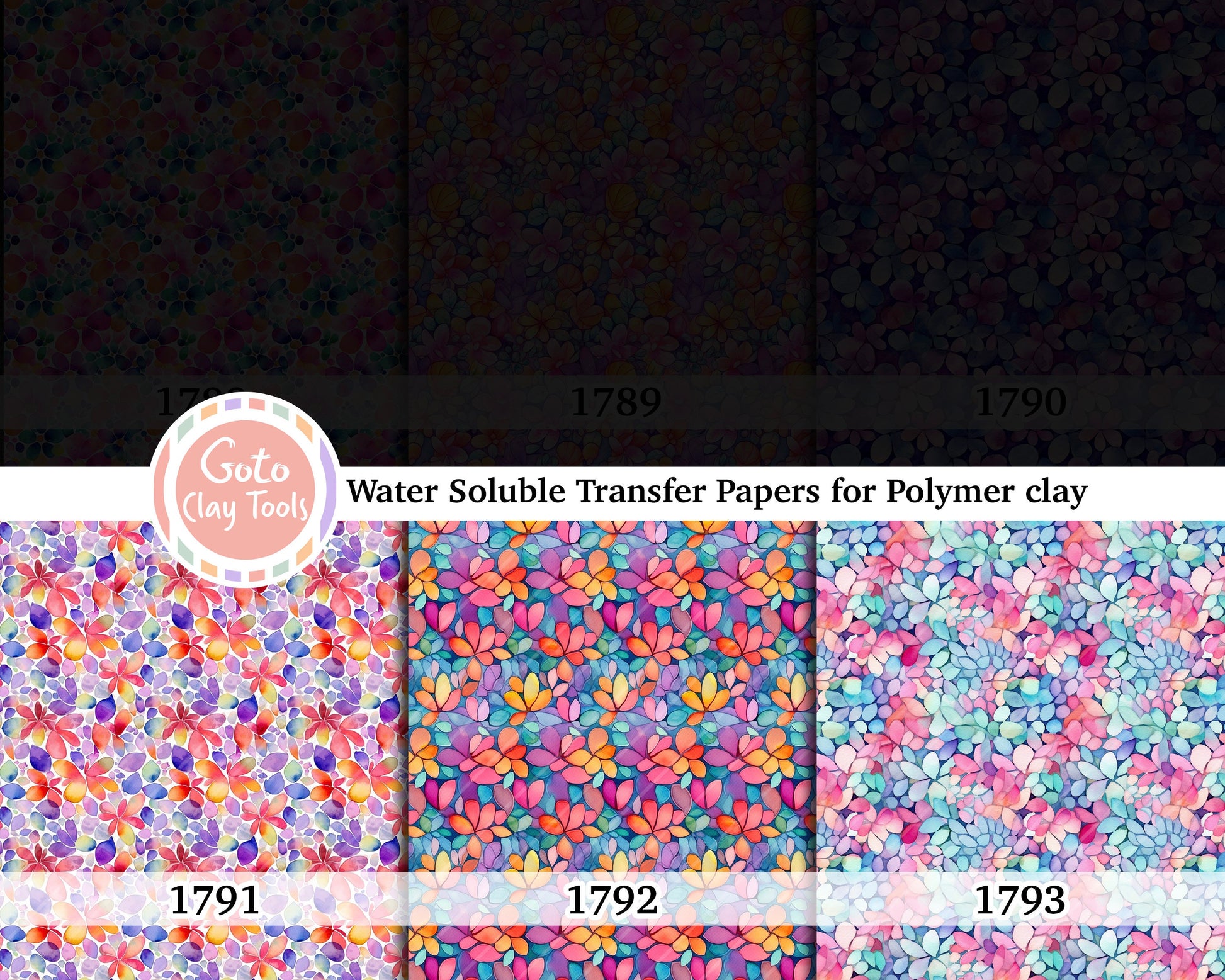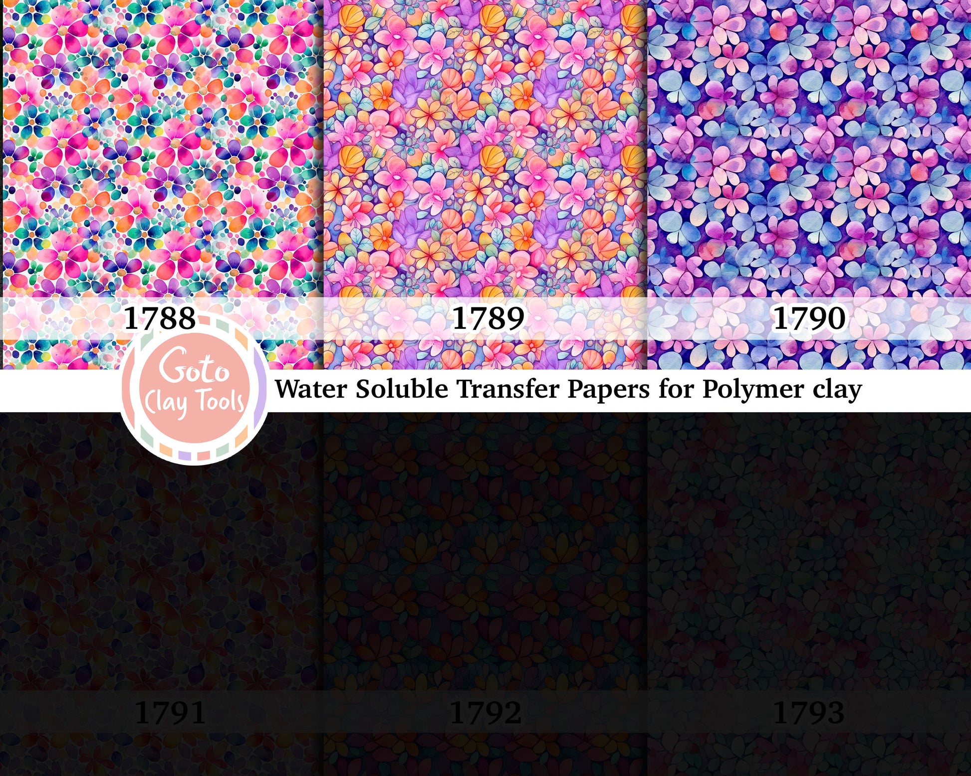 Water soluble Transfer paper for polymer clay, Colorful watercolor floral pattern, polymer clay image transfers, magic transfer paper