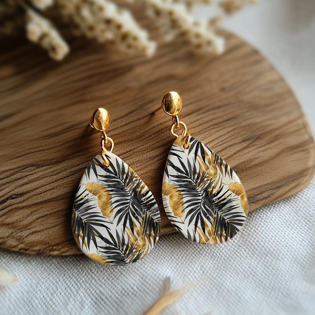 Gold and black tropical leaf pattern Transfer paper for polymer clay, water soluble transfer paper, polymer clay image transfers, magic transfer paper