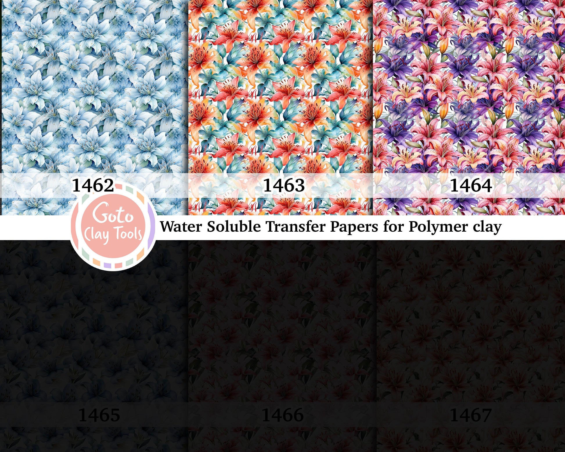 Water soluble Transfer paper for polymer clay, Lily floral, polymer clay image transfers, magic transfer paper