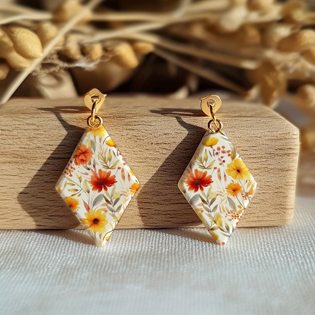 Water soluble Transfer paper for polymer clay, Orange and yellow floral pattern, polymer clay image transfers, magic transfer paper