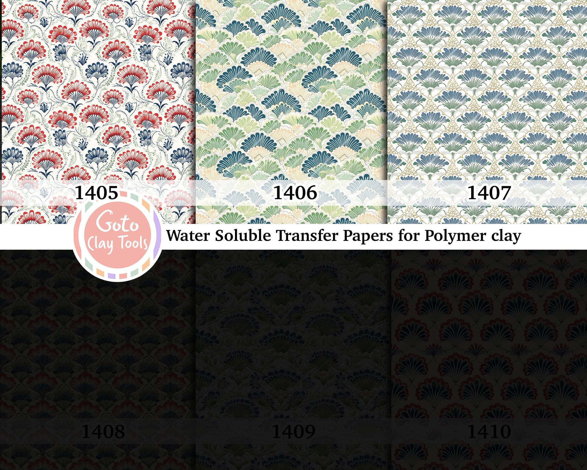 Water soluble Transfer paper for polymer clay, Ornamental scallop pattern, polymer clay image transfers, magic transfer paper