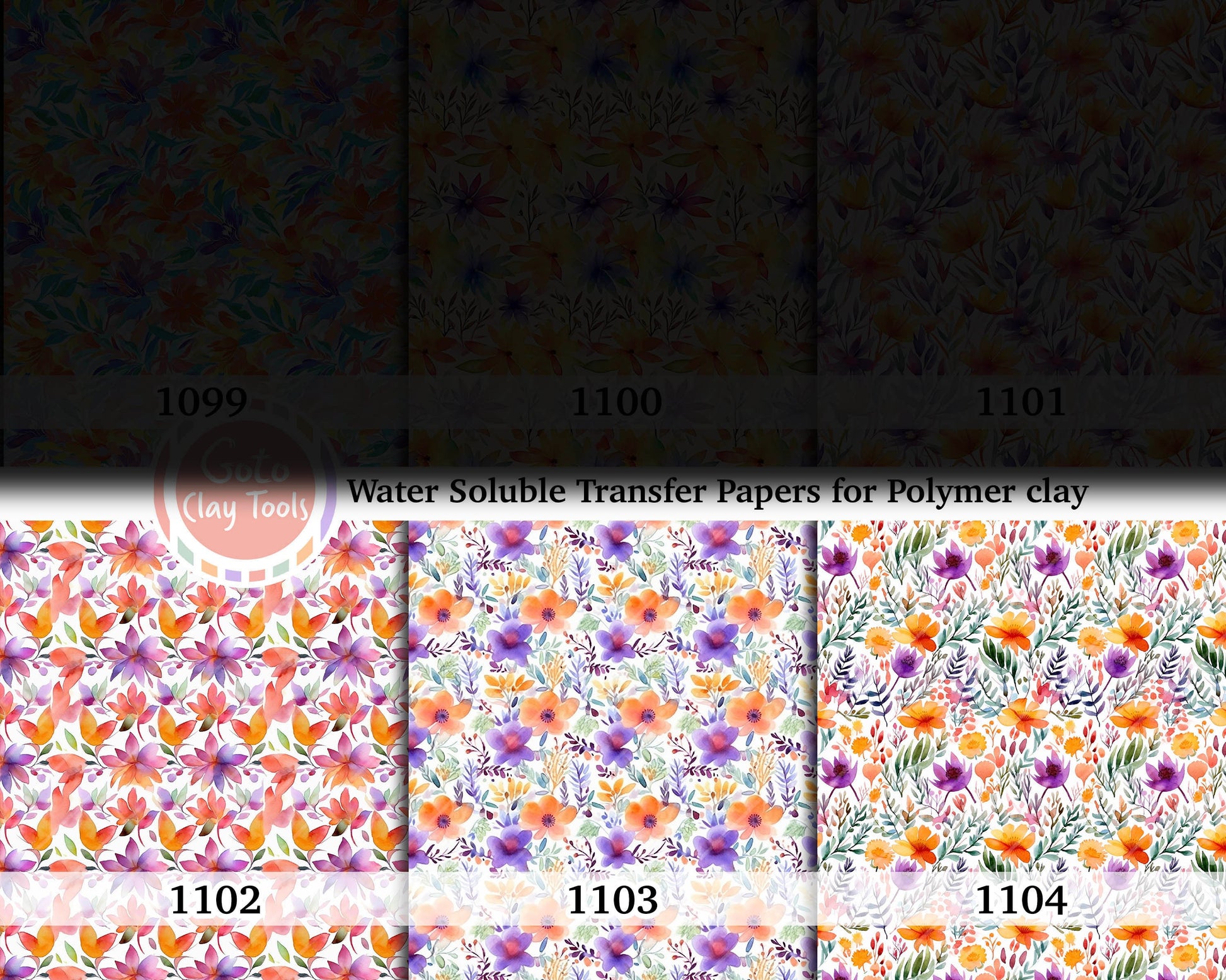 Water soluble Transfer paper for polymer clay, watercolor colorful floral pattern, polymer clay image transfers, magic transfer paper