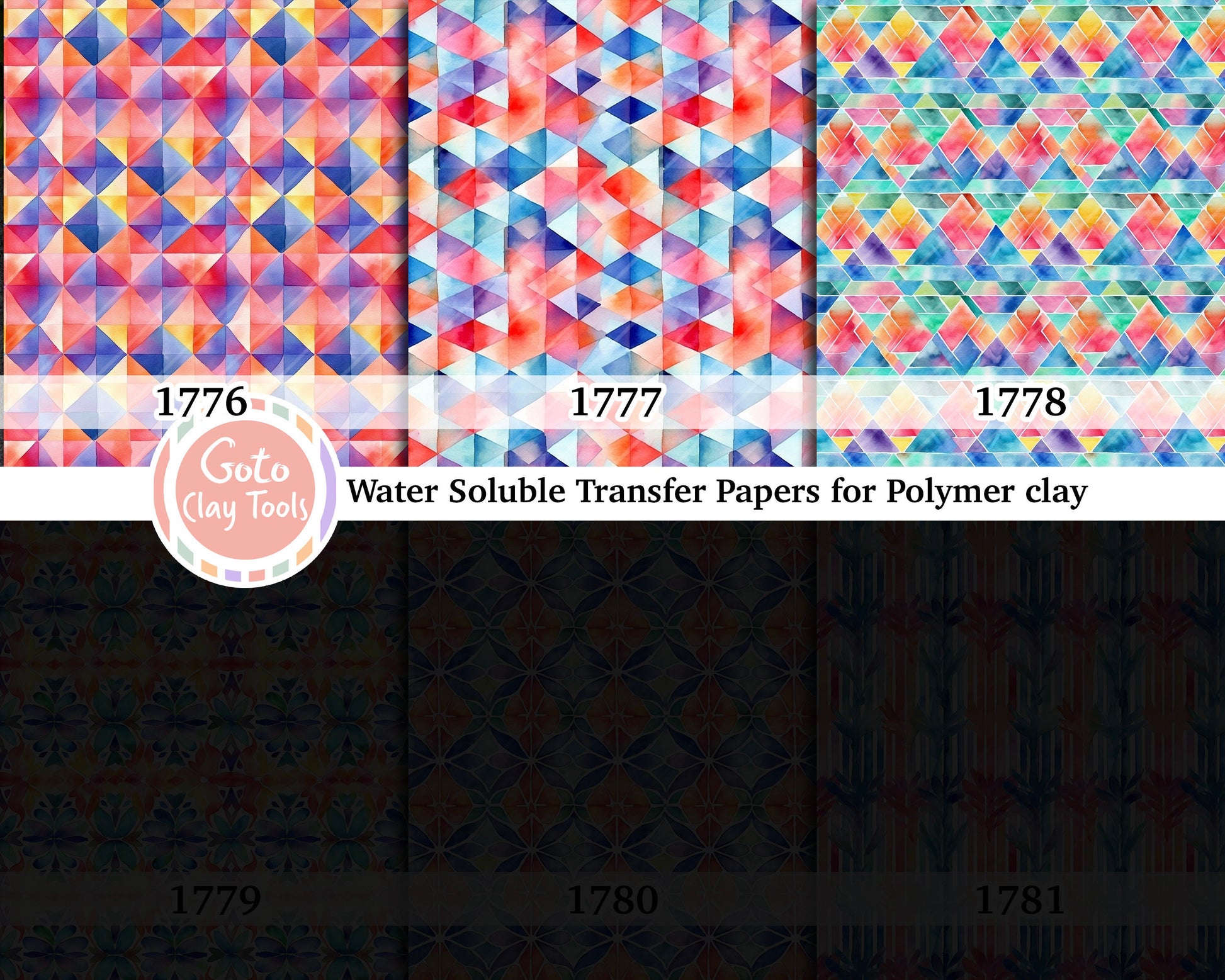 Watercolor geometrical pattern Transfer paper for polymer clay, water soluble transfer paper, polymer clay image transfers, magic transfer paper