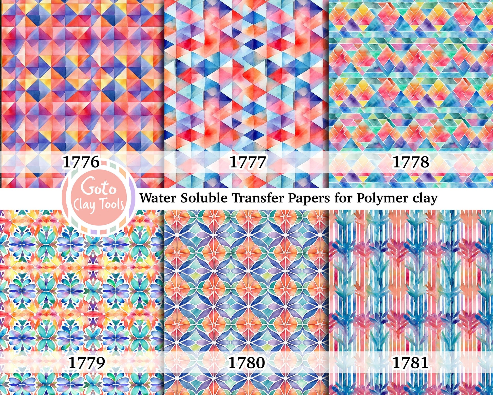 Water soluble Transfer paper for polymer clay, Watercolor geometrical pattern, polymer clay image transfers, magic transfer paper