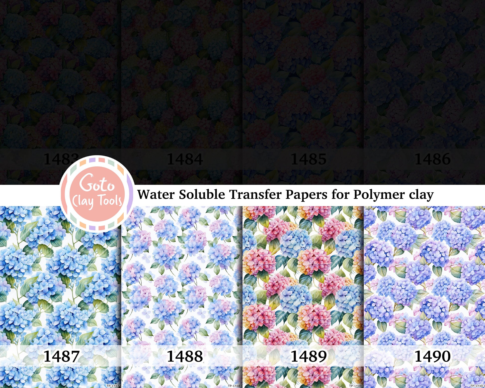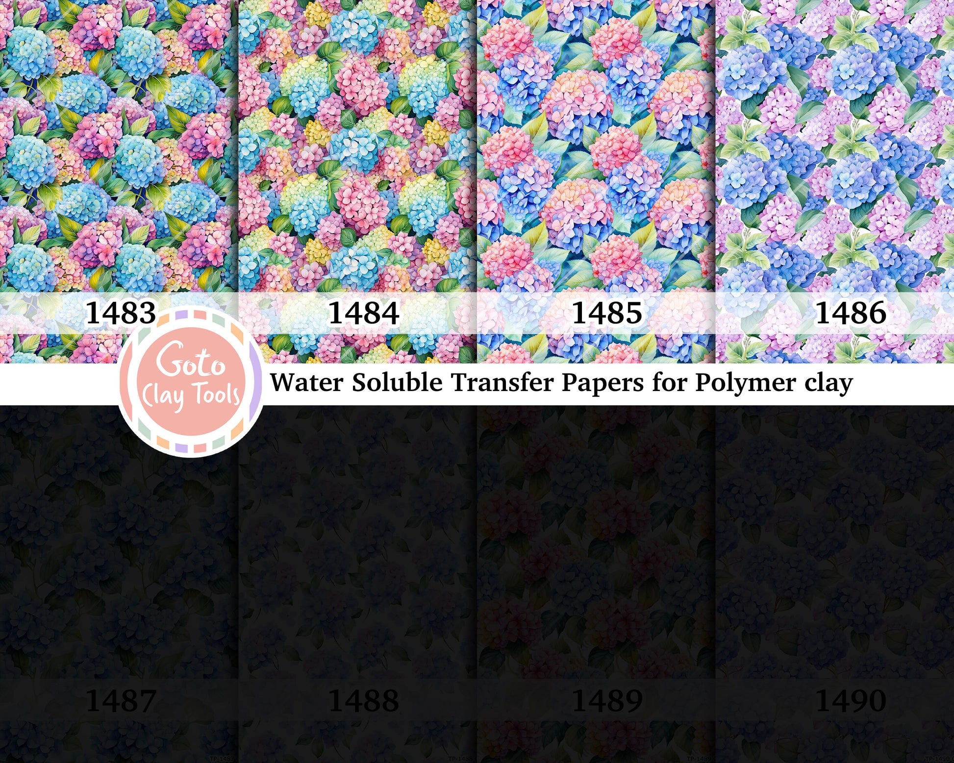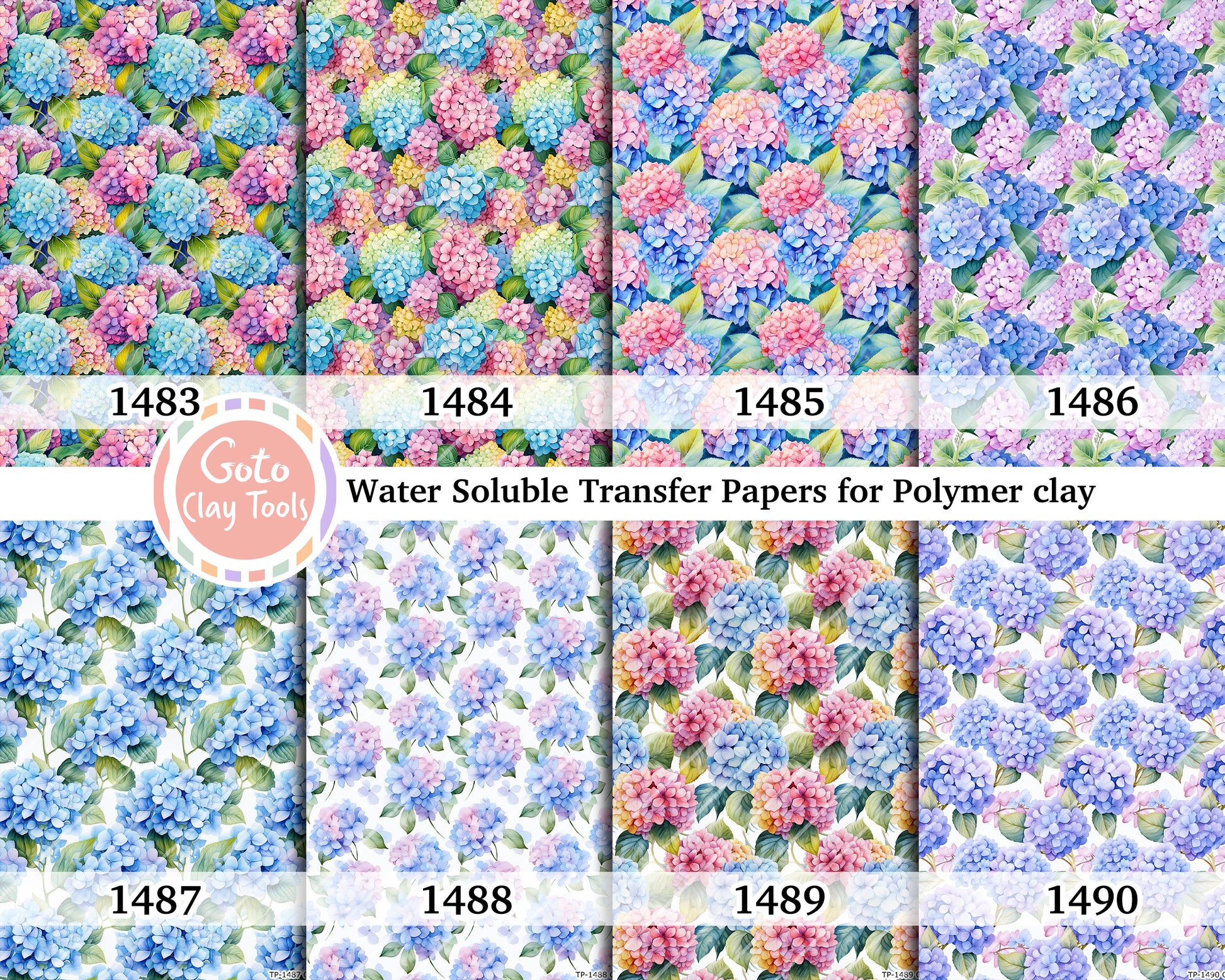 Water soluble Transfer paper for polymer clay, Watercolor hydrangea floral pattern, polymer clay image transfers, magic transfer paper