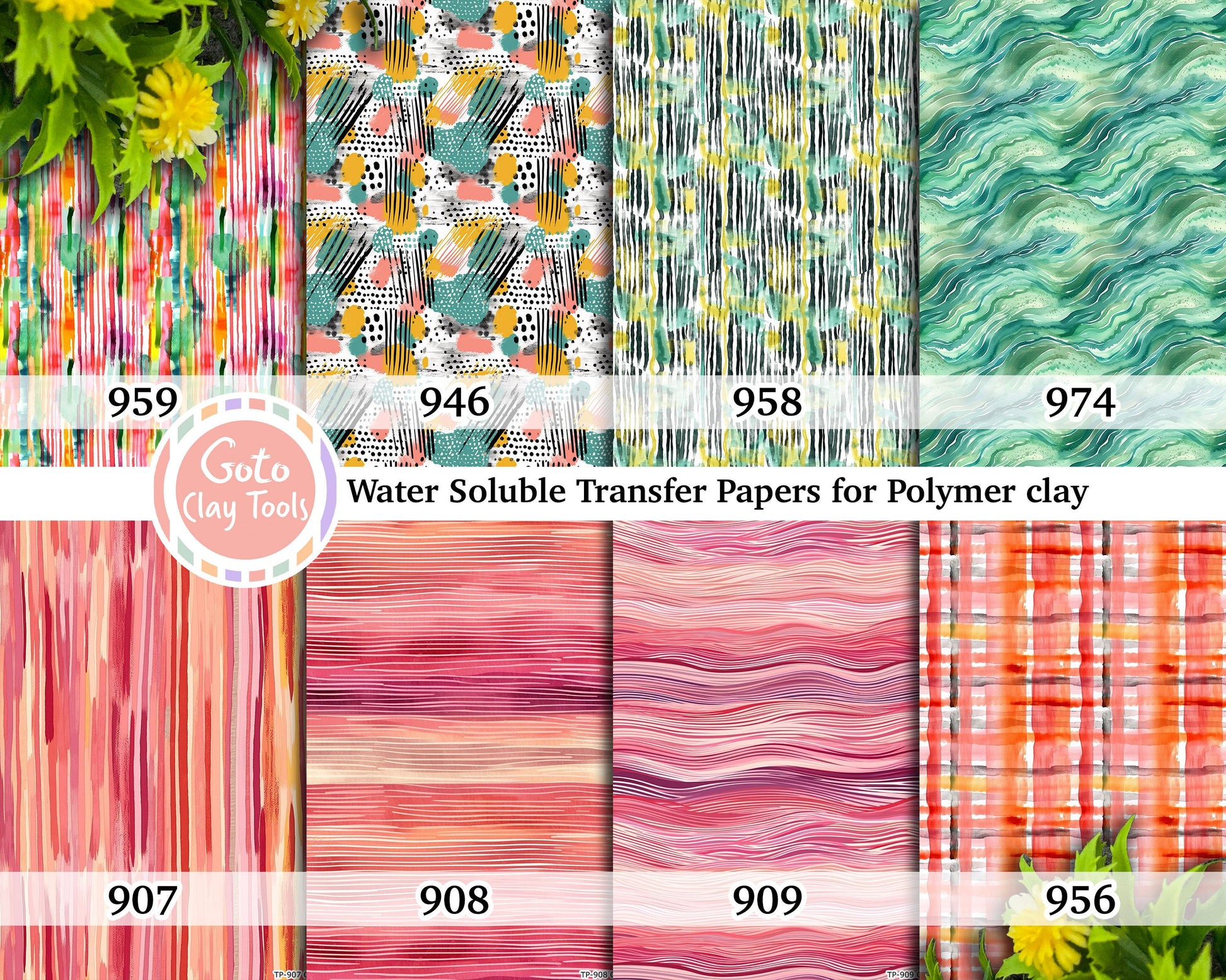 Water soluble Transfer paper for polymer clay, Watercolor Stripes patterns, polymer clay image transfers, magic transfer paper