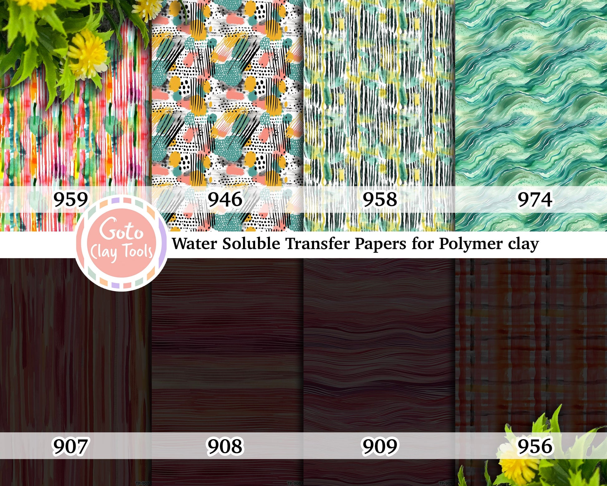 Watercolor waves and abstract Transfer paper for polymer clay, water soluble transfer paper, polymer clay image transfers, magic transfer paper