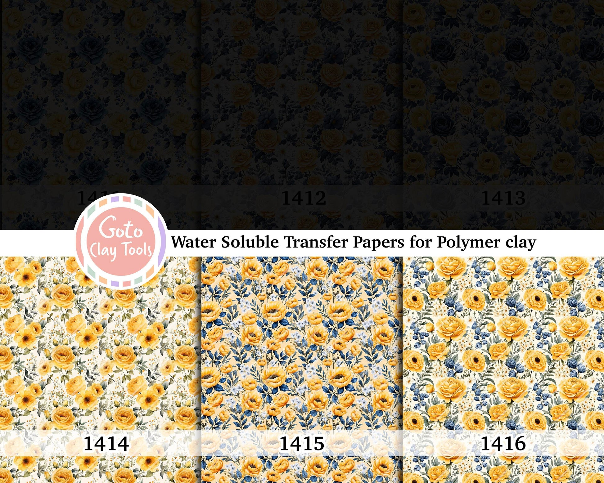Yellow and Blue Rose pattern Transfer paper for polymer clay, water soluble transfer paper, polymer clay image transfers, magic transfer paper