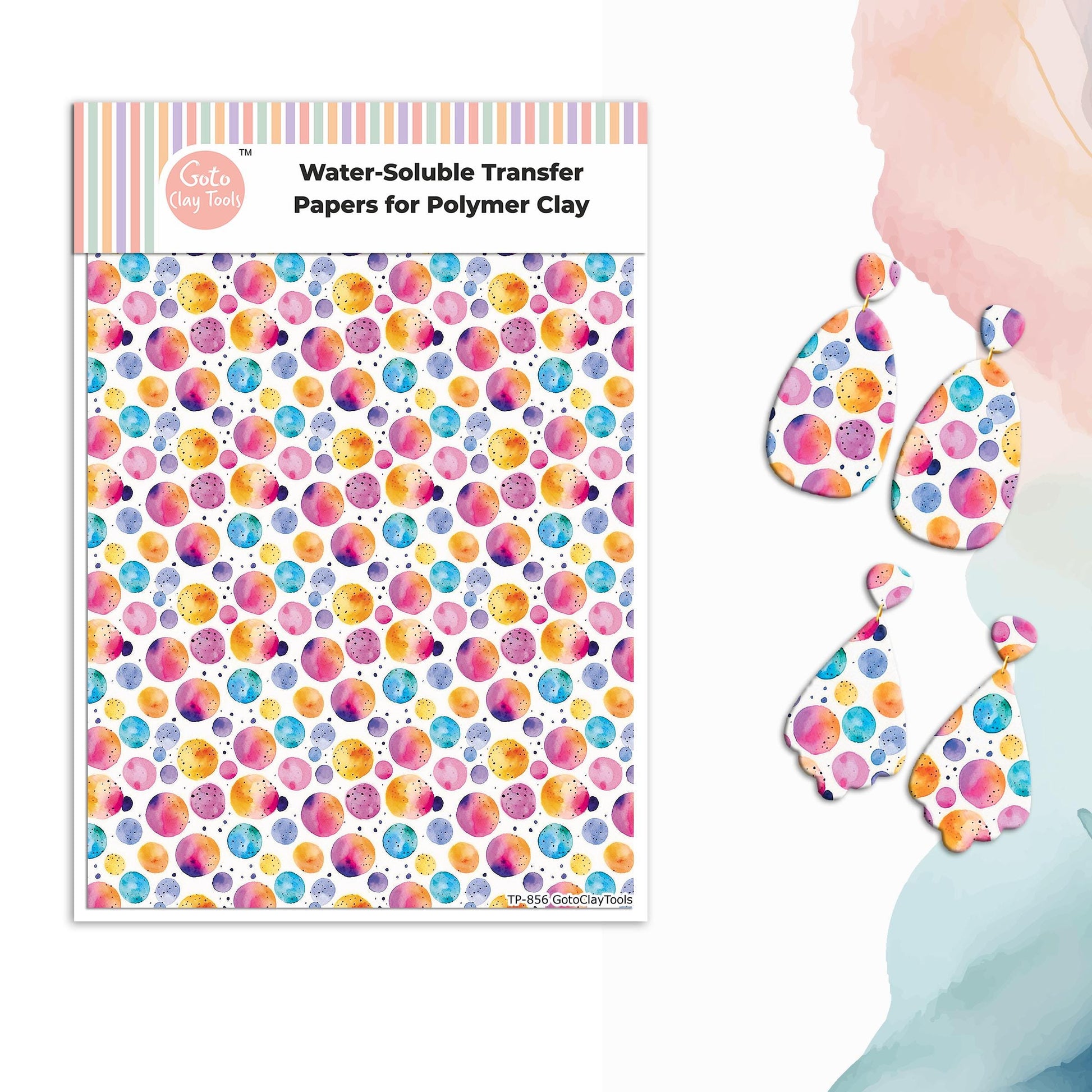 Colorful polka dots Transfer paper for polymer clay, water soluble transfer paper, polymer clay image transfers, magic transfer paper