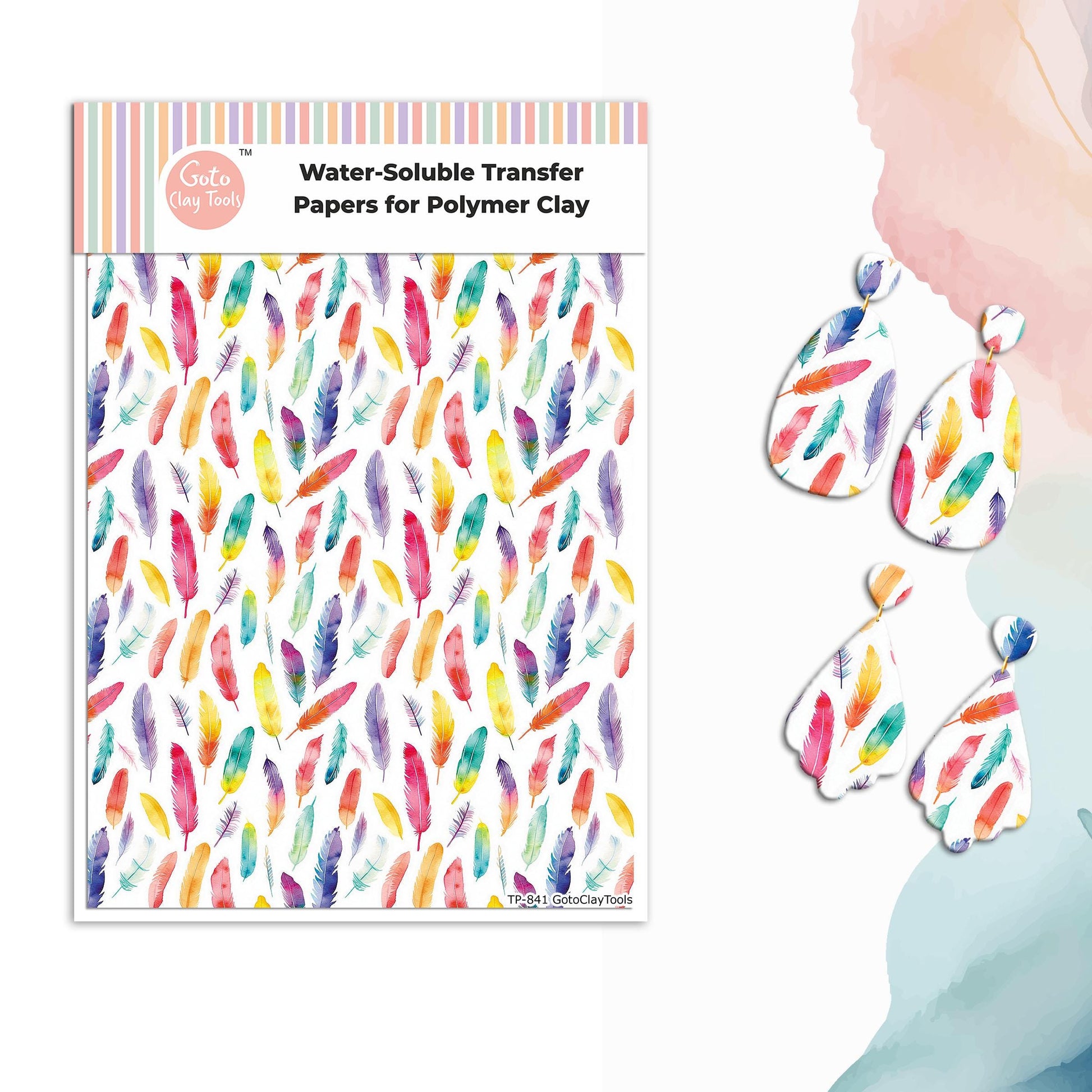 Colorful feathers Transfer paper for polymer clay, water soluble transfer paper, polymer clay image transfers, magic transfer paper