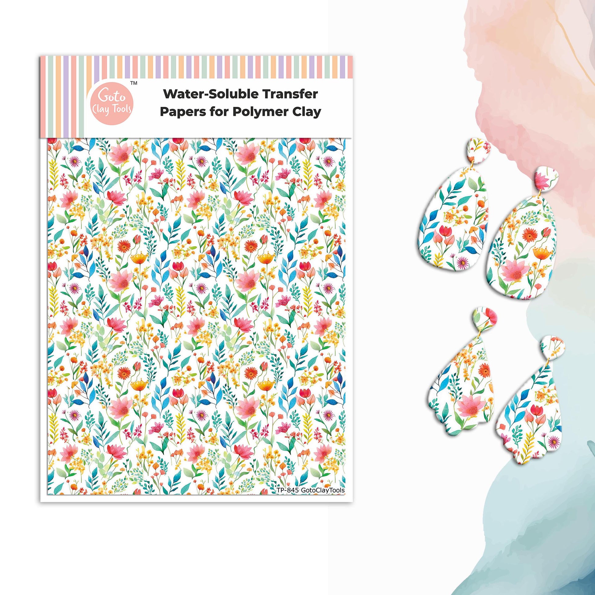 Watercolor Flower Transfer Paper for Polymer Clay (4x5.5 inch) #845