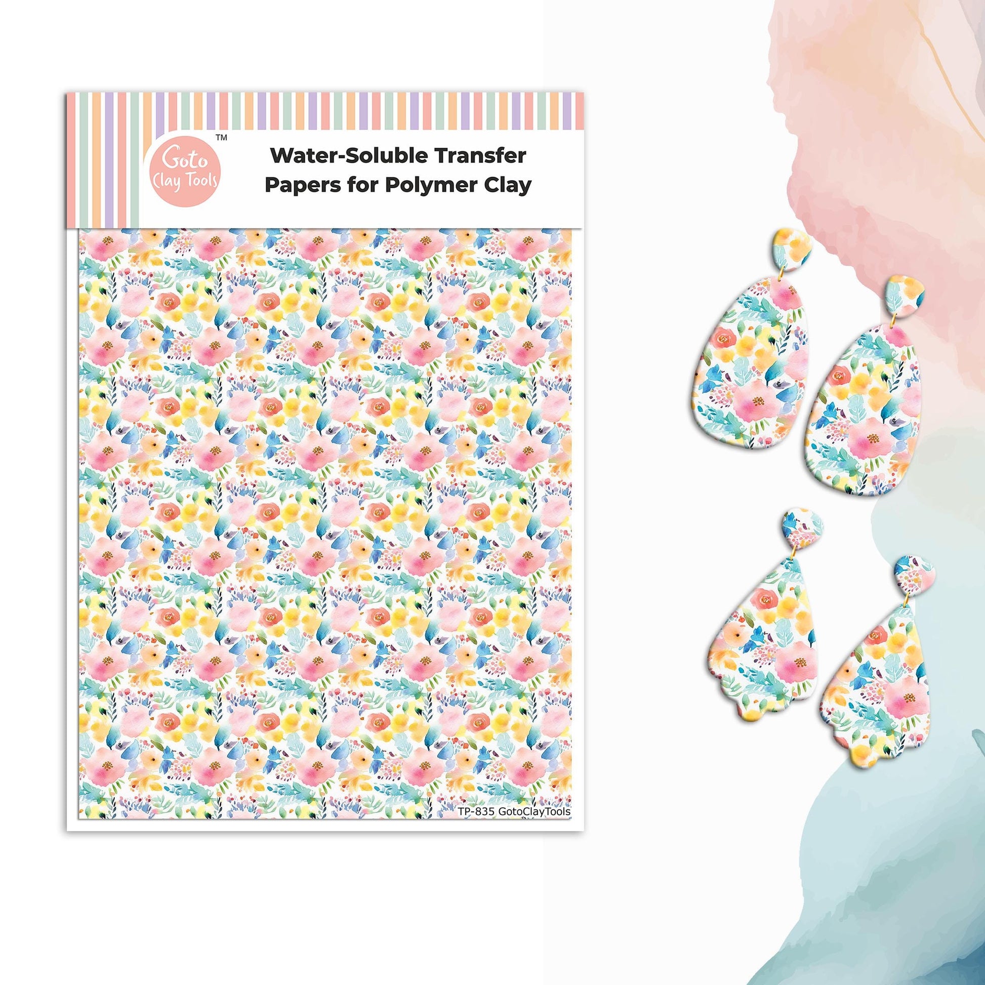 Watercolor Flower Transfer Paper for Polymer Clay #835