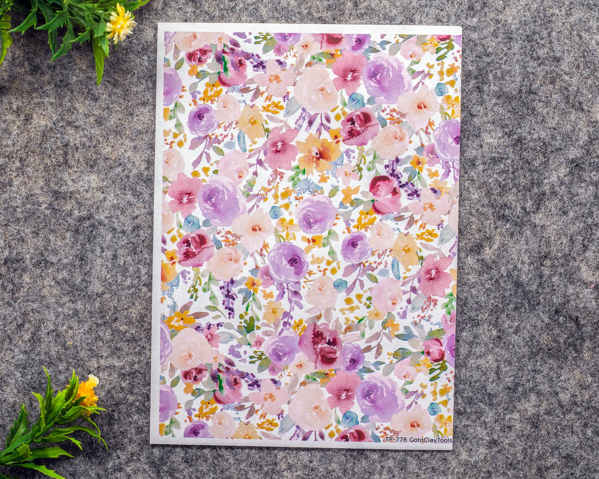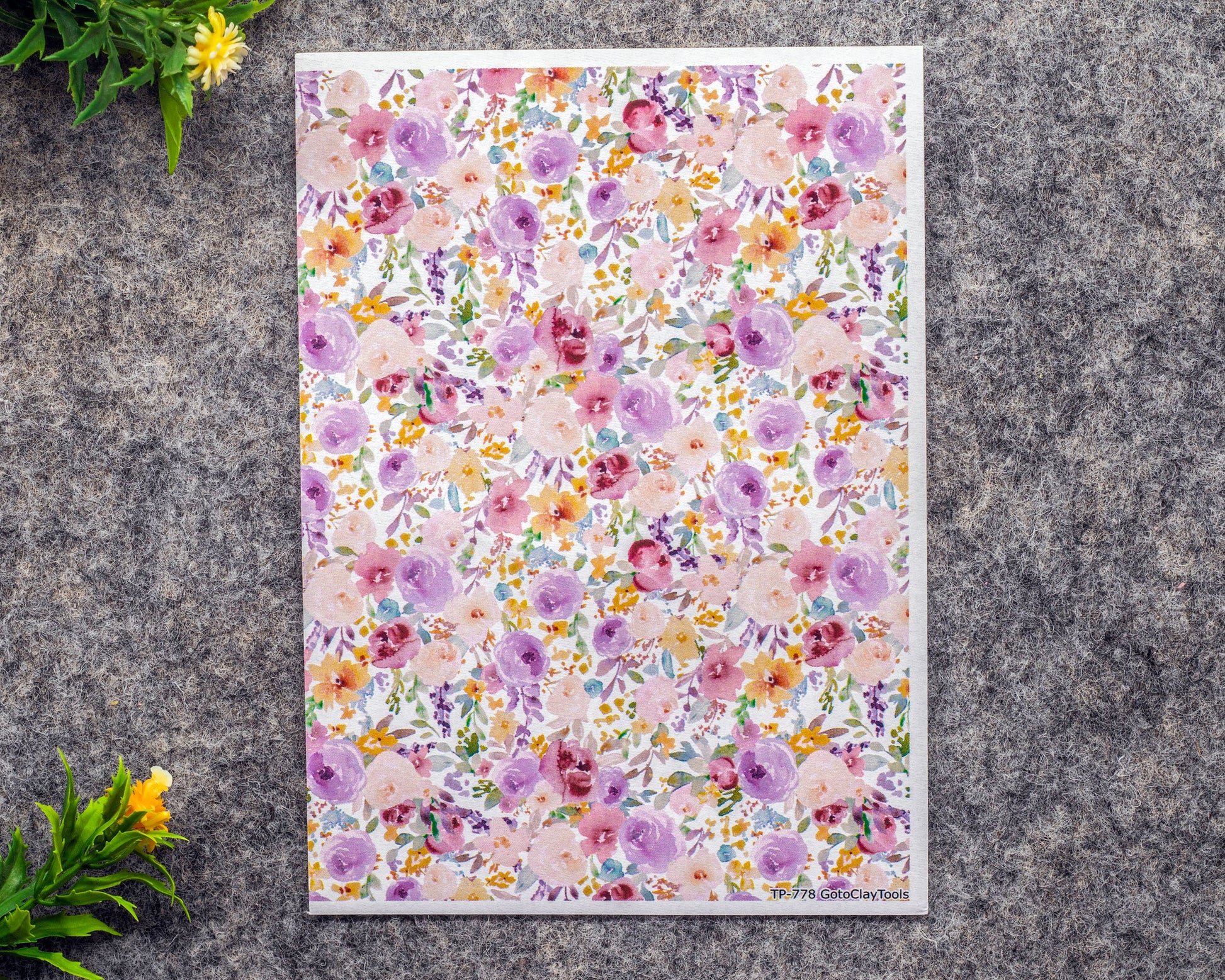 Watercolor Flowers Transfer Paper for Polymer Clay #778C