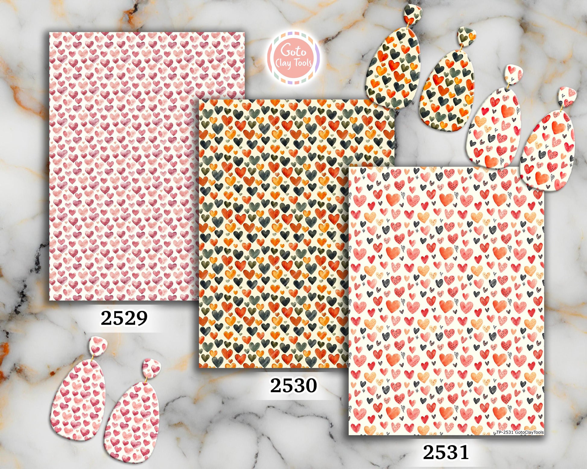 Watercolor Heart Polymer Clay Transfer Sheet (4x5.5 inches)