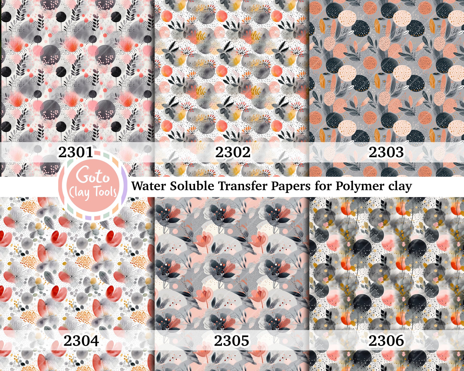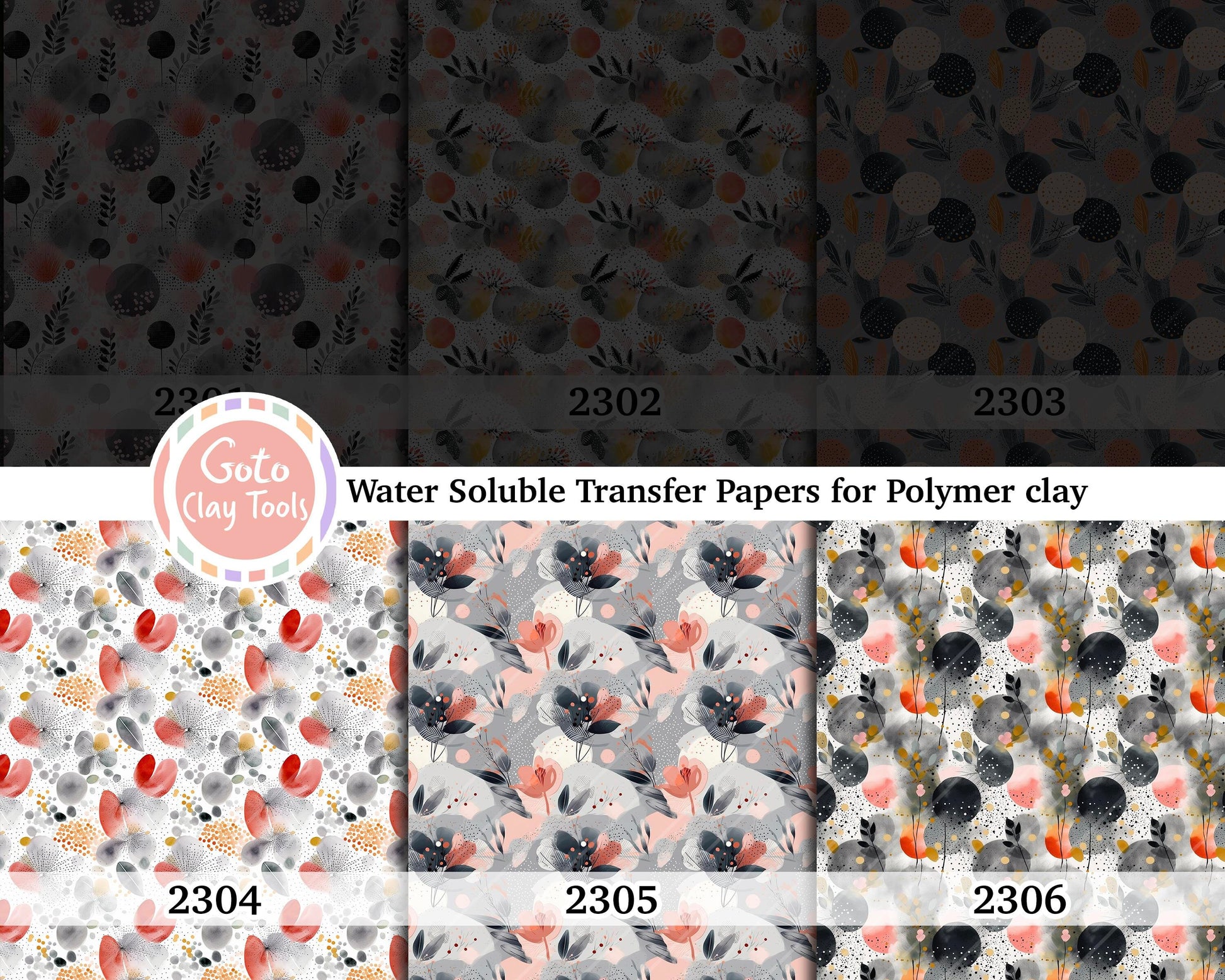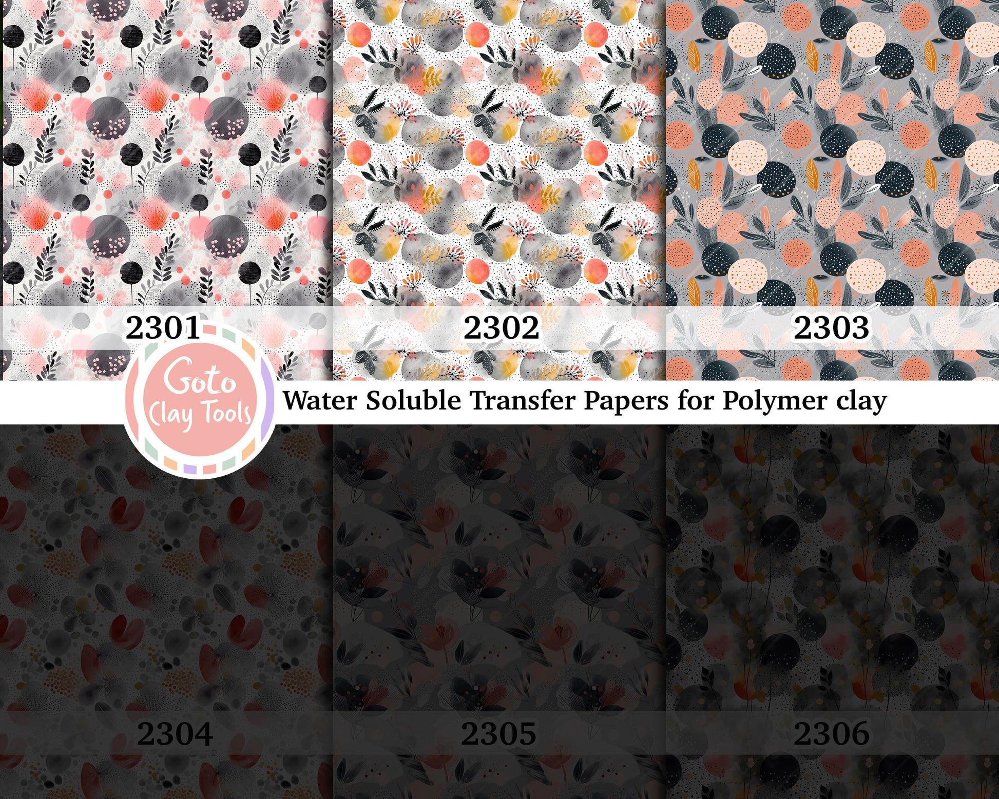 Watercolor circle and leaf pattern Transfer paper for polymer clay, water soluble transfer paper, polymer clay image transfers, magic transfer paper