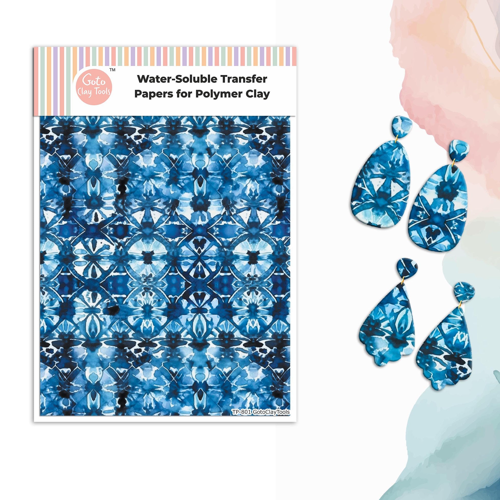 Tie and dye blue Transfer paper for polymer clay, water soluble transfer paper, polymer clay image transfers, magic transfer paper