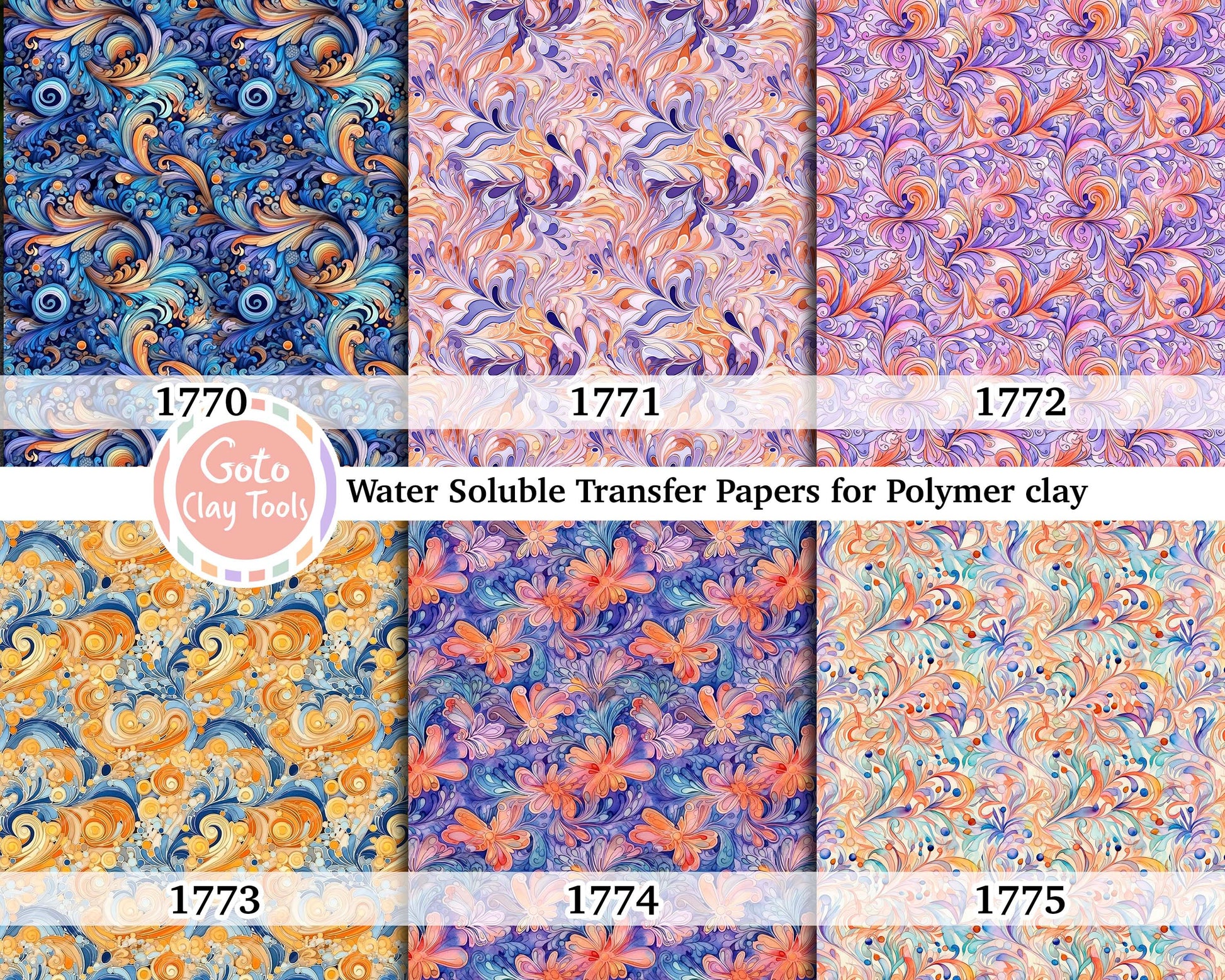 Watercolor ornamental pattern Transfer paper for polymer clay, water soluble transfer paper, polymer clay image transfers, magic transfer paper