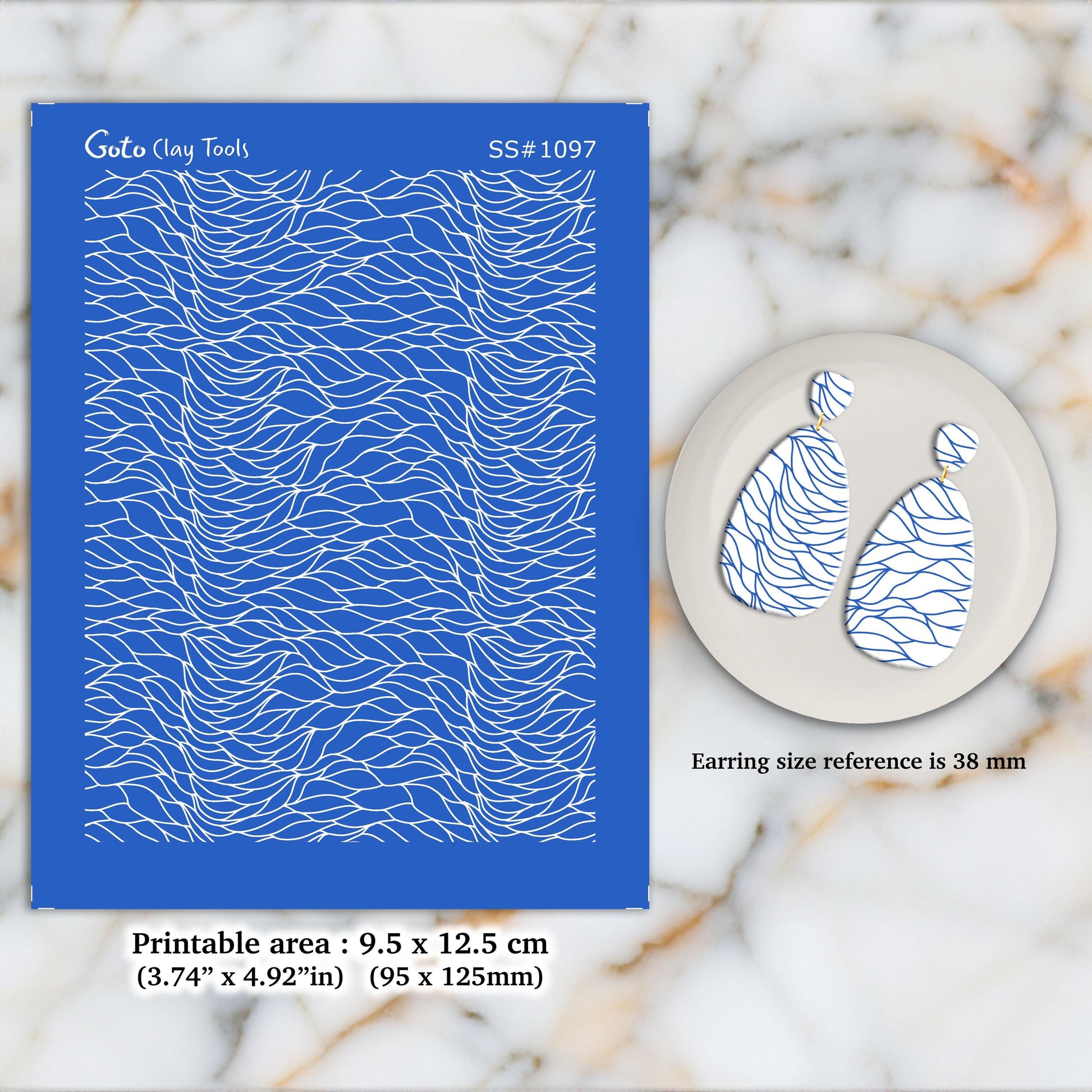 Wavy lines pattern Silkscreen for Polymer Clay Earring making, Clay Stencils, Clay Earring Silkscreen, Polymer Clay Supplies