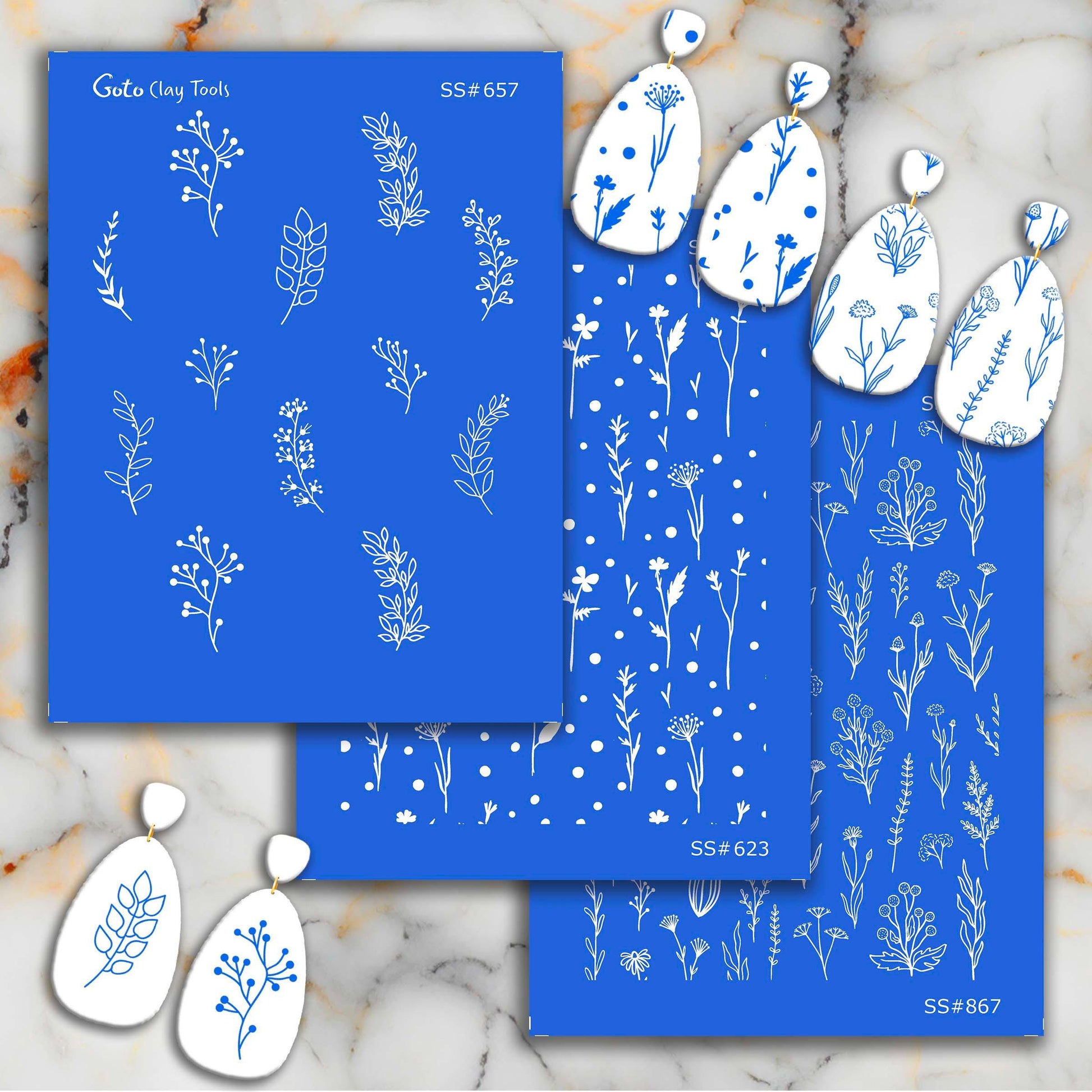 Wild flowers Silkscreen for Polymer Clay Earring making, Clay Stencils, Clay Earring Silkscreen, Polymer Clay Supplies