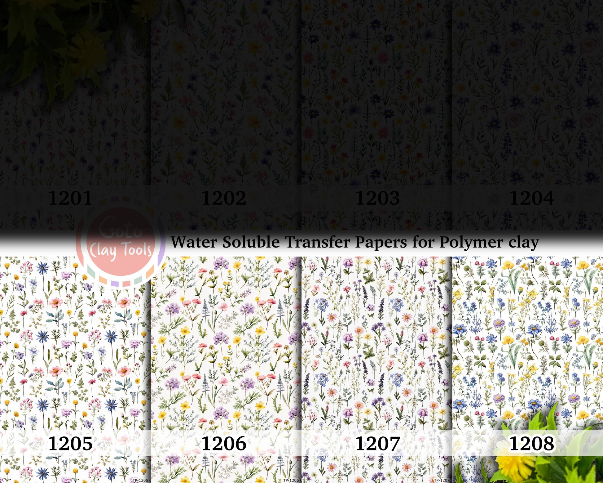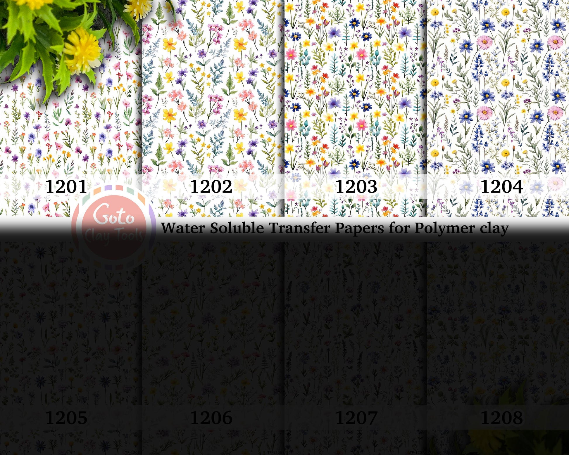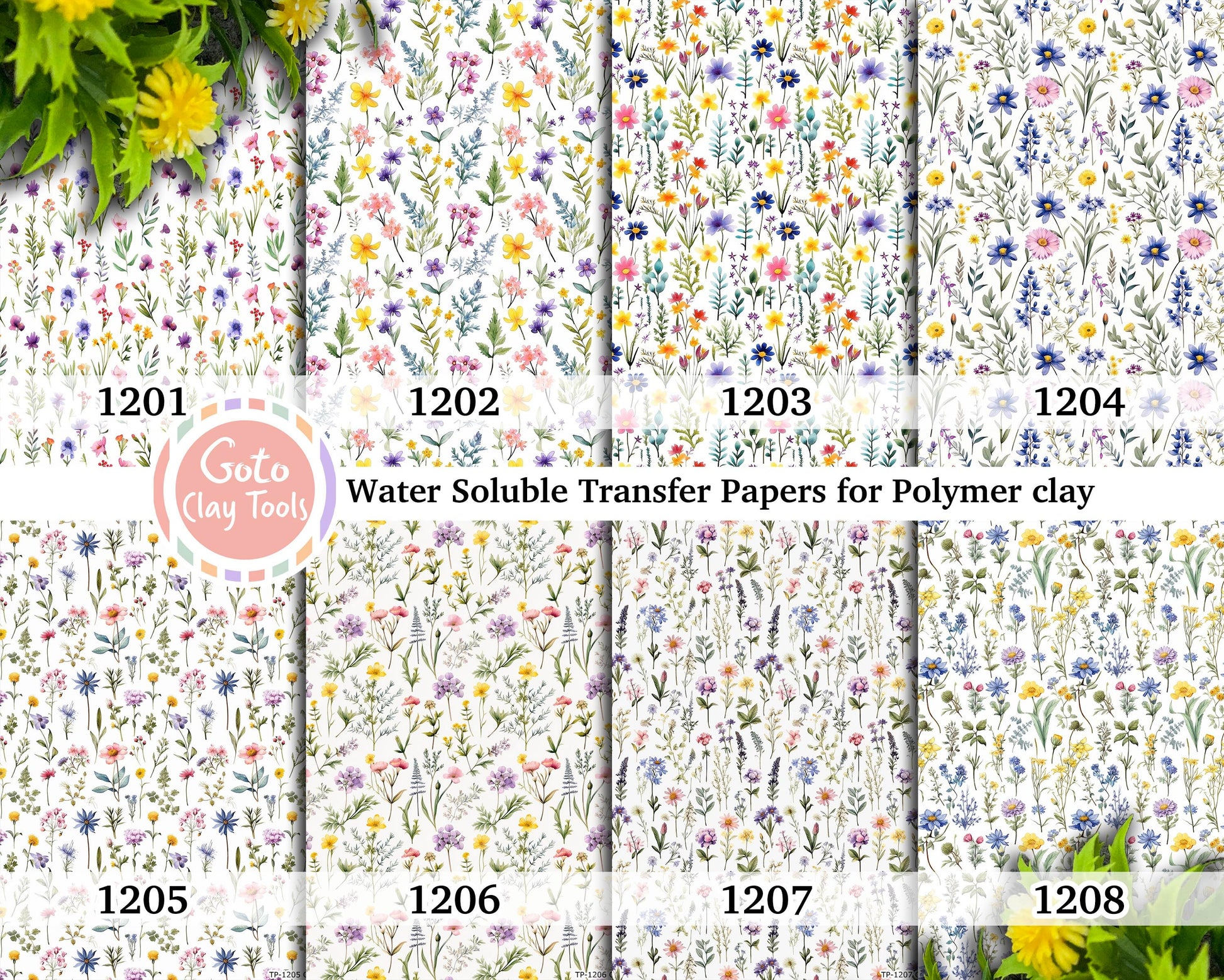 Colorful wildflowers watercolor pattern Transfer paper for polymer clay, water soluble transfer paper, polymer clay image transfers, magic transfer paper